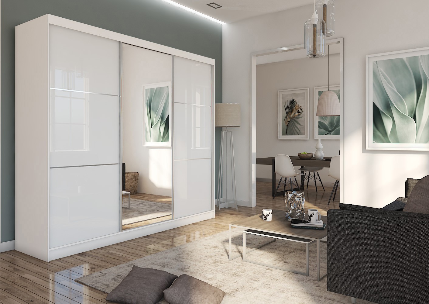 W naszym sklepie meblowym znajdziesz duży wybór szaf. Możesz wybrać szafę w różnych rozmiarach, od 120cm do nawet więcej niż 200cm. Oferujemy szafy w różnych stylach i dużej gamie kolorystycznej. Drzwi mogą być przesuwne lub uchylne i możesz wybrać model z lustrem, bez lutra, z połyskiem lub wersję matową. Możesz także zamówić szafę z dodatkowo zamontowanym oświetleniem (oferujemy różne rodzaje oświetlenia). Zapraszamy do przeglądania naszej oferty, a w razie pytań lub wątpliwości, do kontaktu z nami!
