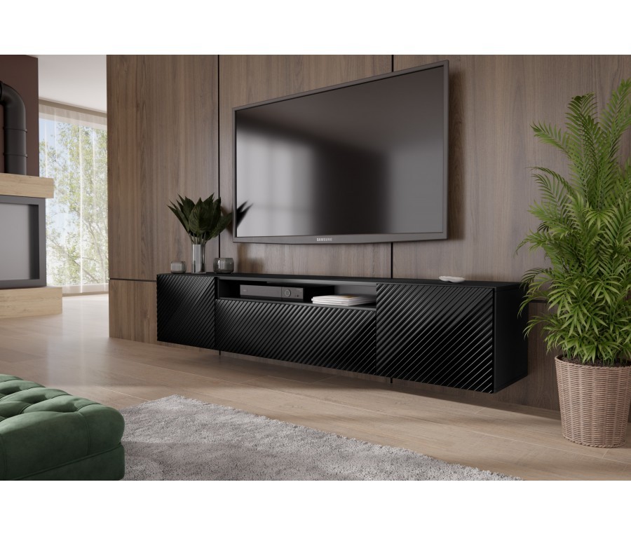 Szafka RTV Cleo Czarny/Biały Mat Frezowana wisząca