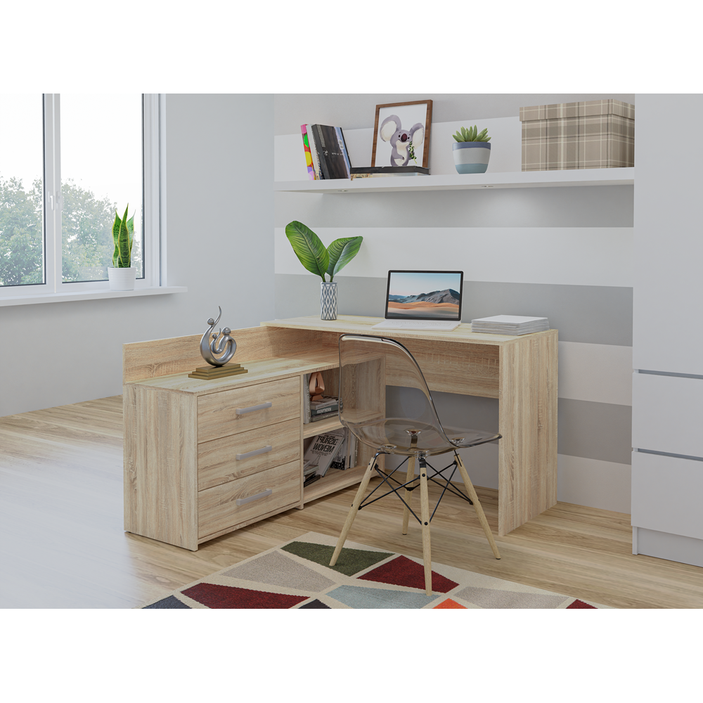 FUNKCJONALNE NAROŻNE BIURKO Z 3 SZUFLADAMI