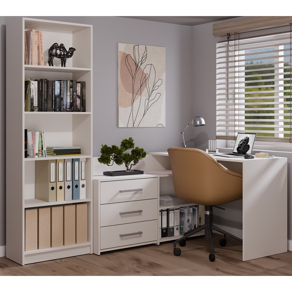 Biurko DANY jest w kształcie litery L, dzięki czemu łatwo wykorzystać wolne przestrzenie w pokoju, jednocześnie zapewniając dużą powierzchnię roboczą.