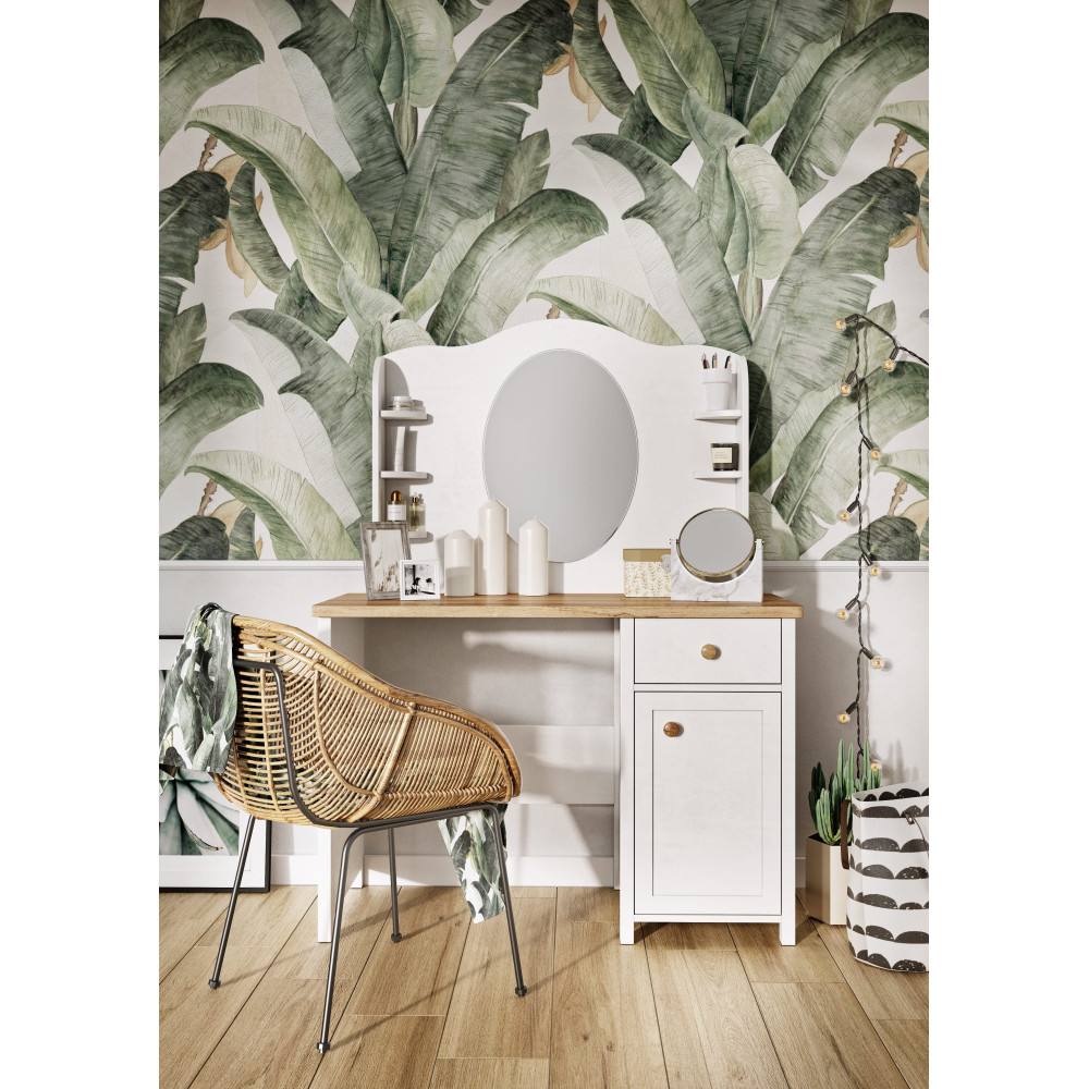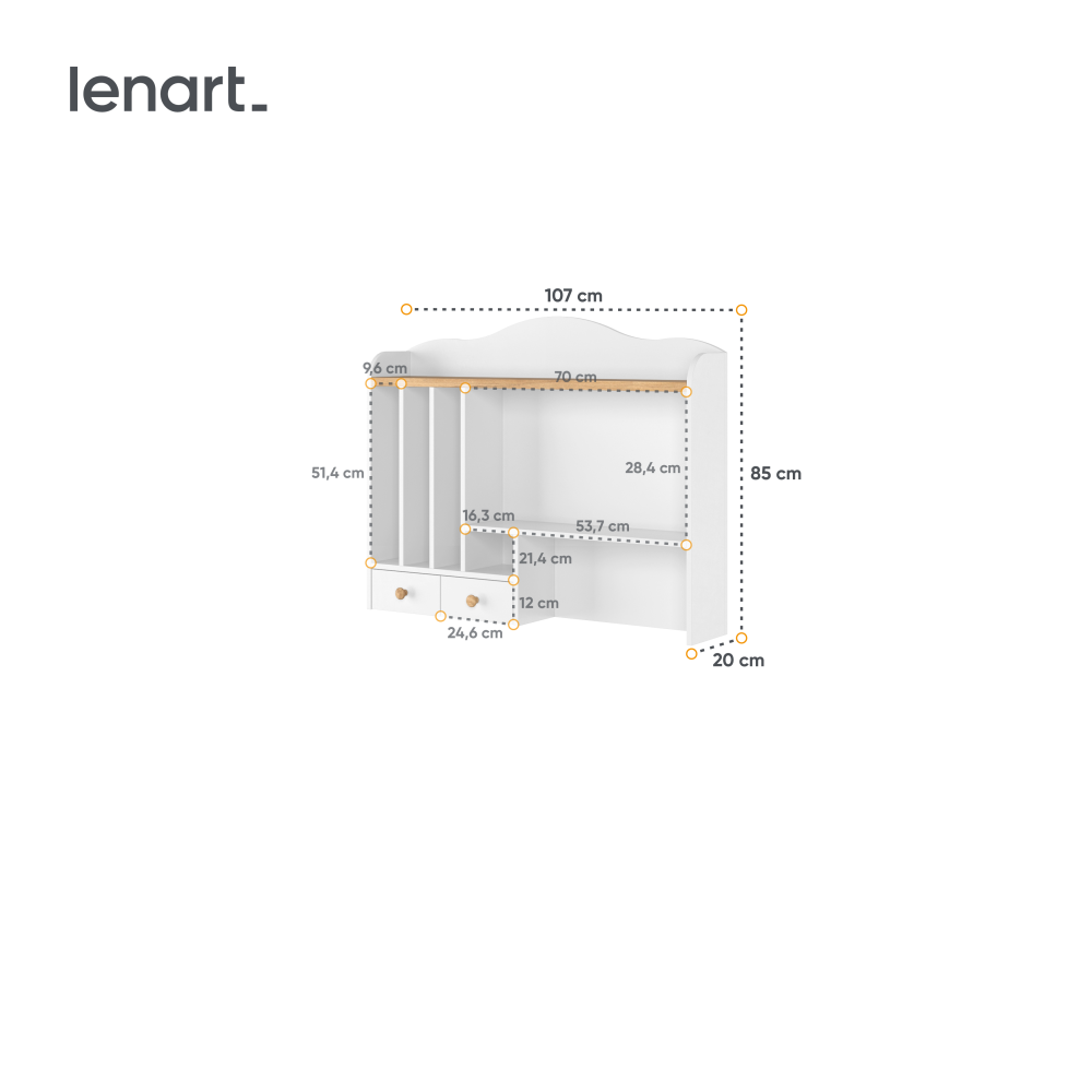 Biurko można skompletować z dwoma rodzajami nadstawek: funkcjonalną nadstawką z półkami na książki i szufladkami lub stylową toaletką z lustrem i półkami, co czyni je wszechstronnym i dopasowanym do różnych potrzeb. Dzięki eleganckiemu designowi, biurko doskonale wpasuje się w każdy dziecięcy lub młodzieżowy pokój.