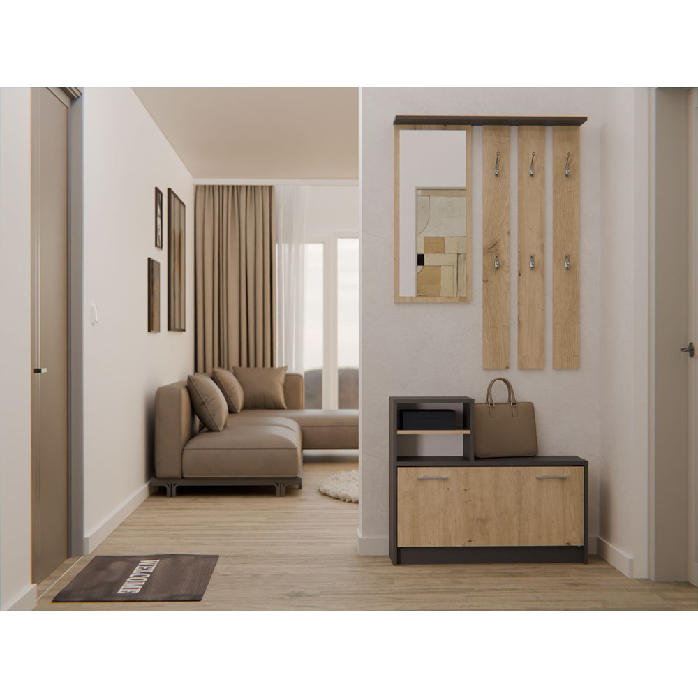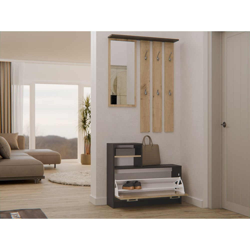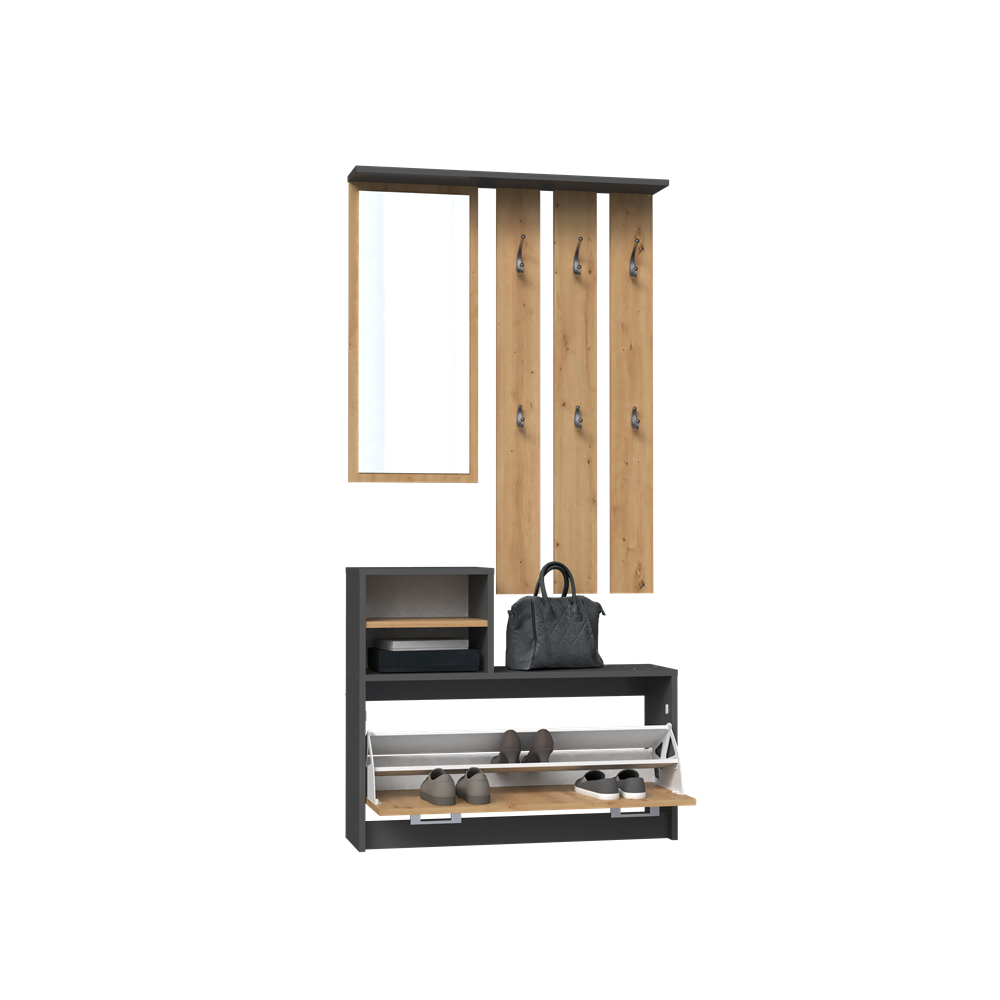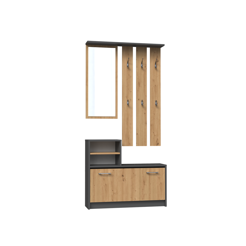 PRAKTYCZNY ZESTAW DO PRZEDPOKOJU WIESZAK Z LUSTREM + SZAFKA NA OBUWIE