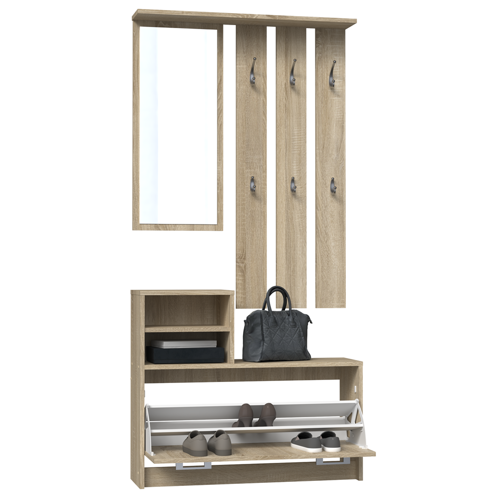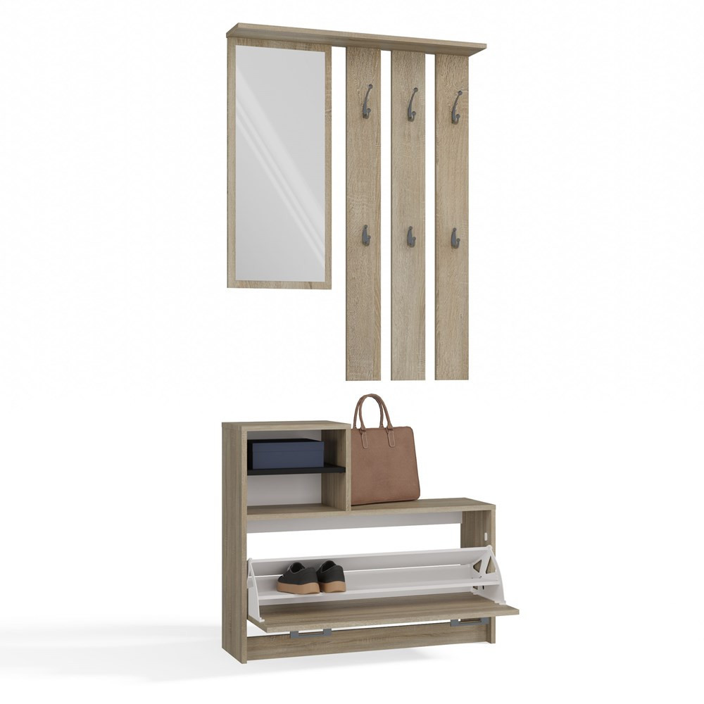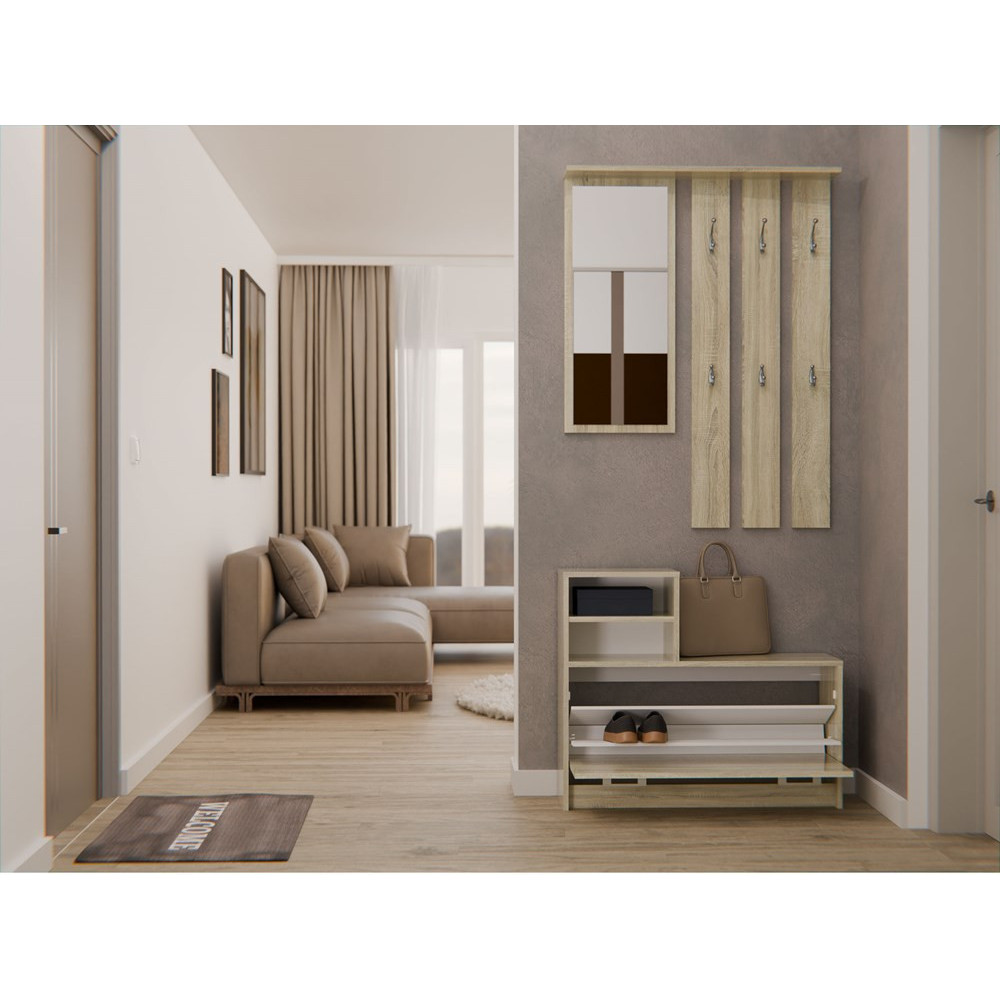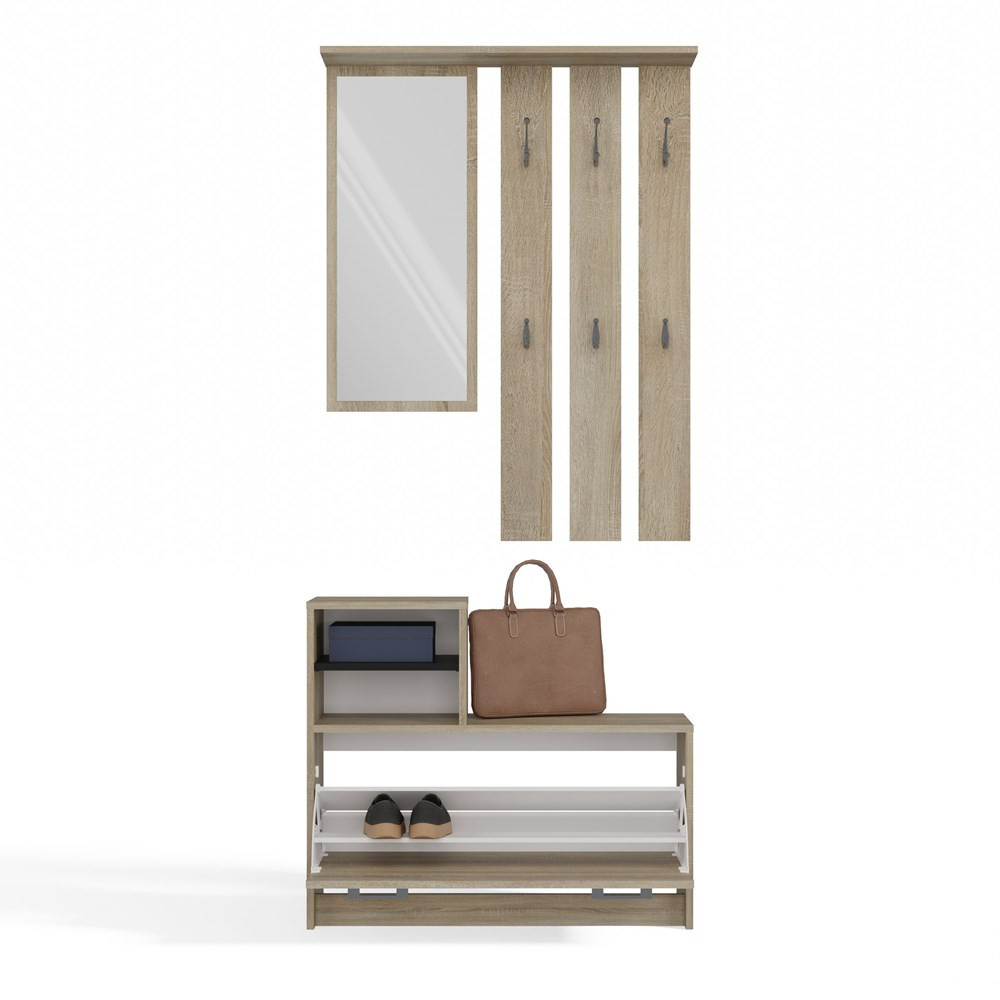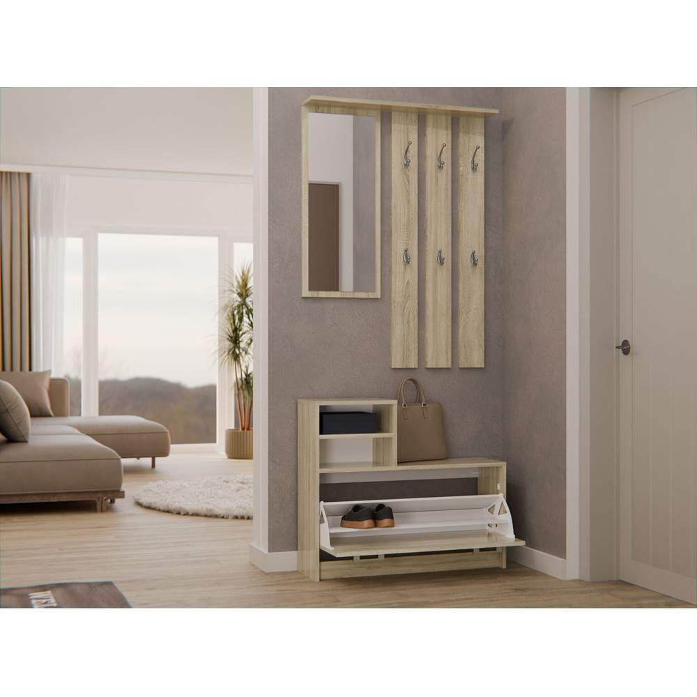 PRAKTYCZNY ZESTAW DO PRZEDPOKOJU WIESZAK Z LUSTREM + SZAFKA NA OBUWIE