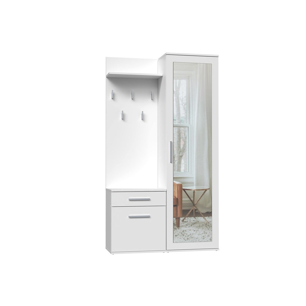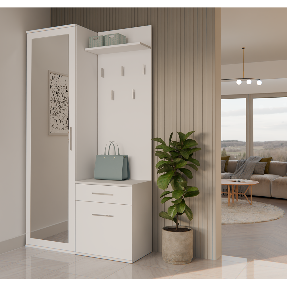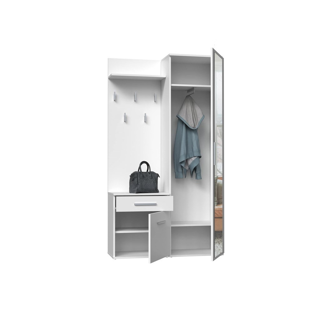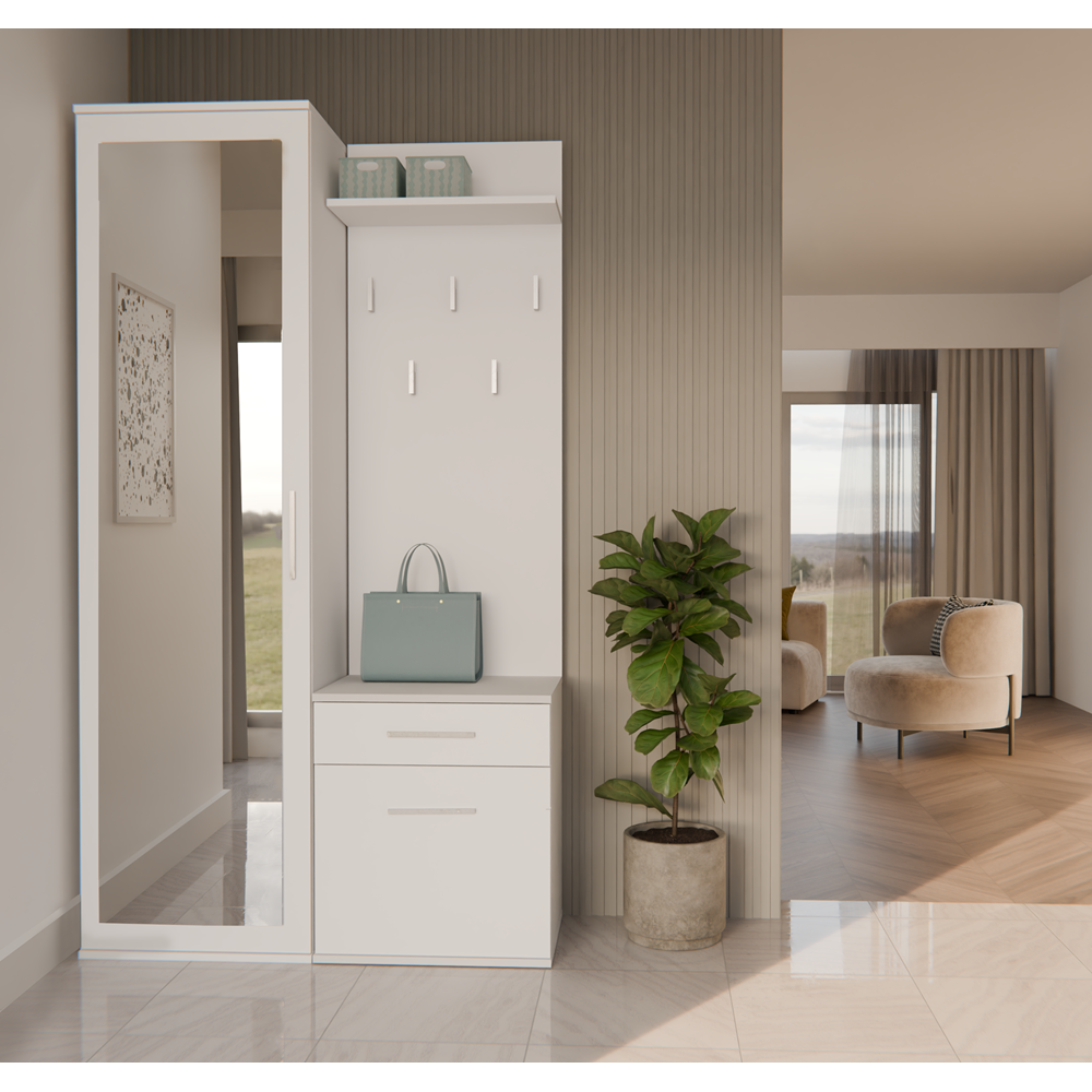 • Szafę z lustrem, szafkę oraz wieszak można zamontować blisko siebie, jak i zarówno rozsunąć.