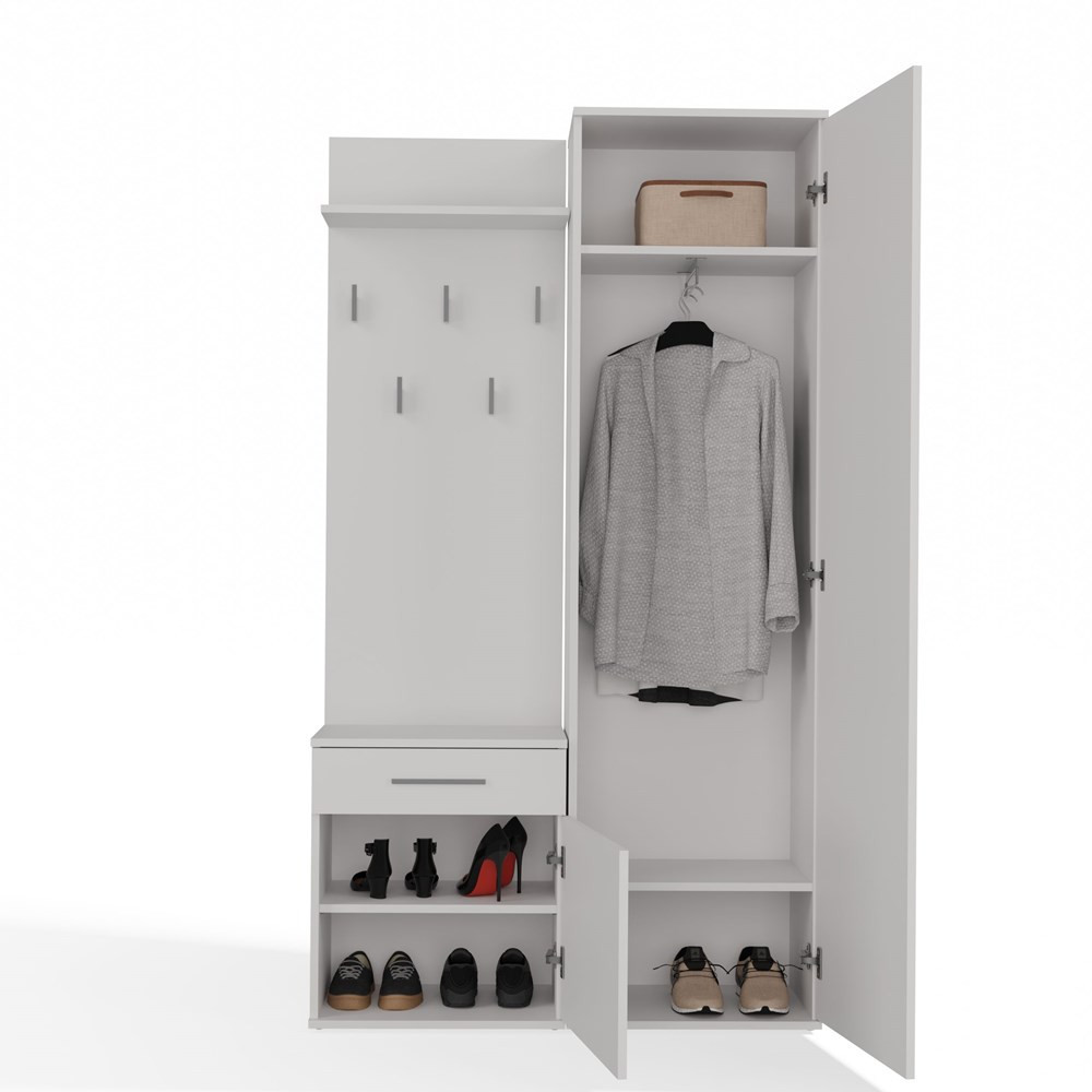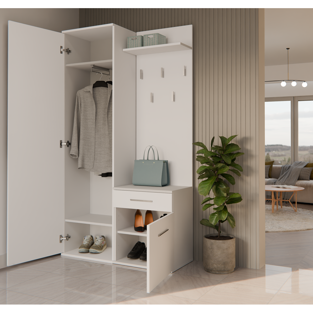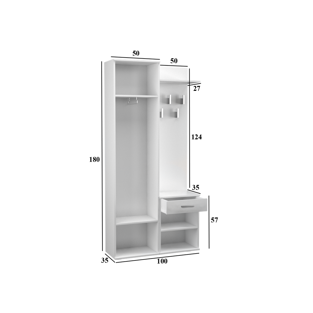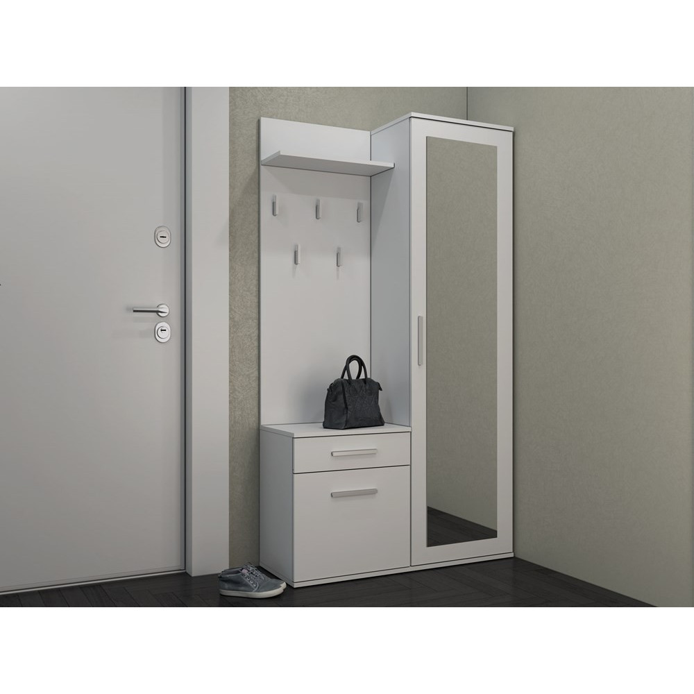 • Szafę z lustrem, szafkę oraz wieszak można zamontować blisko siebie, jak i zarówno rozsunąć.
