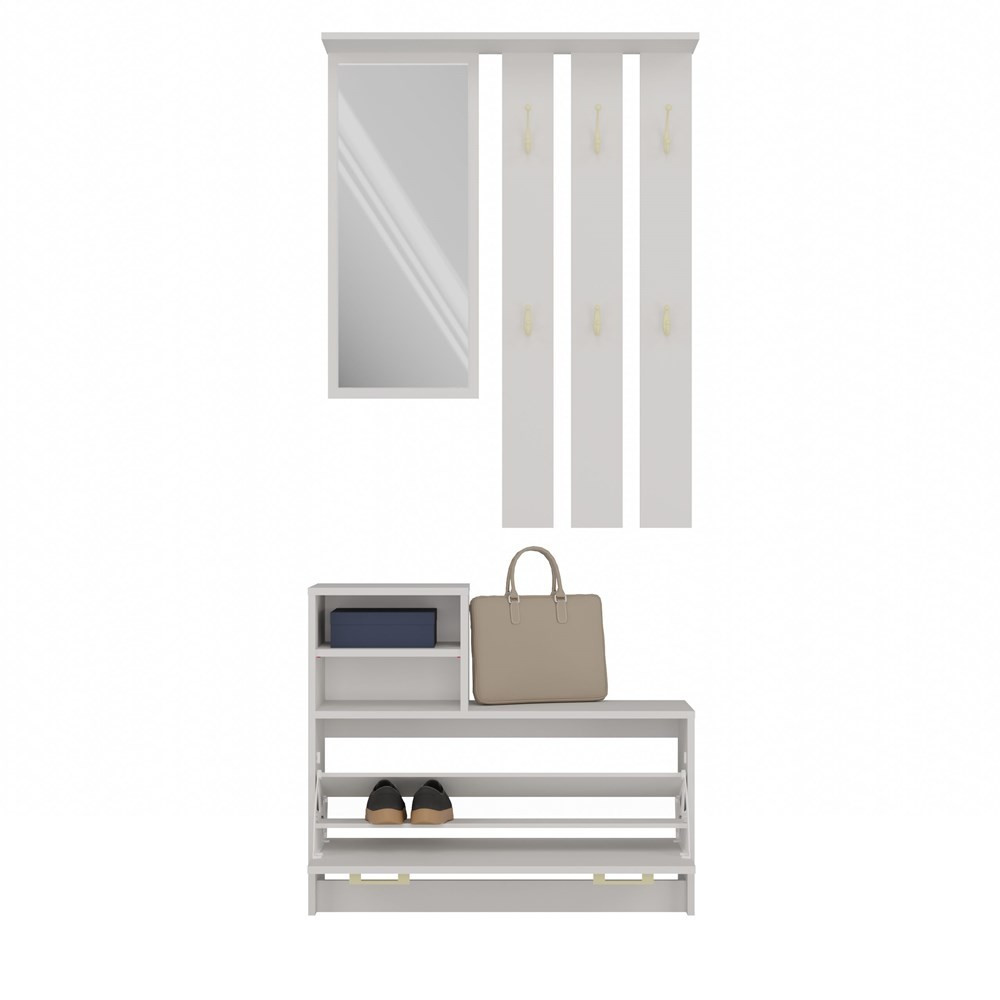 PRAKTYCZNY ZESTAW DO PRZEDPOKOJU WIESZAK Z LUSTREM + SZAFKA NA OBUWIE
