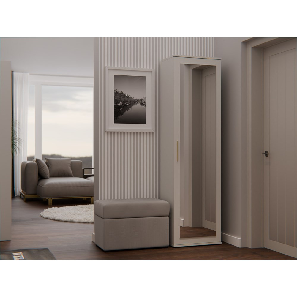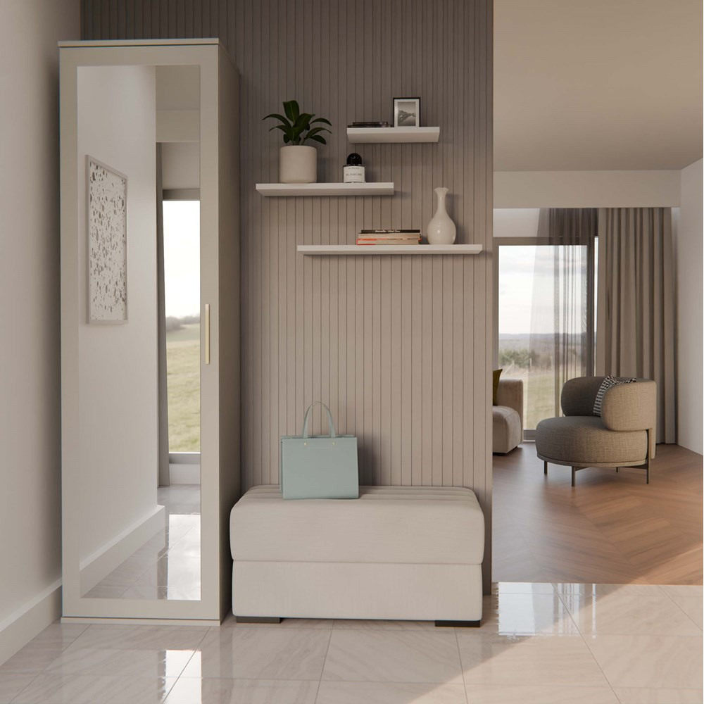 • Drzwi z Lustrem: Drzwi szafy pokryte lustrem, co optycznie powiększa przestrzeń i dodaje wnętrzu elegancji.