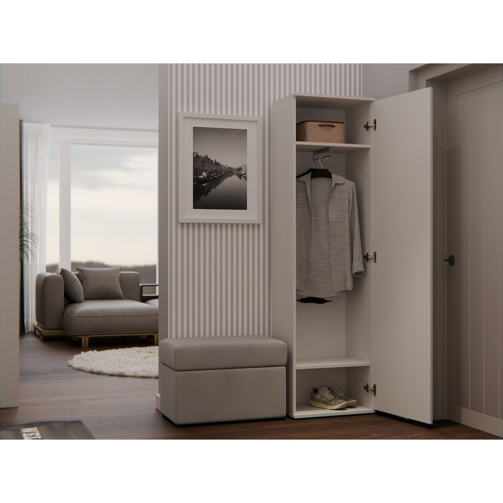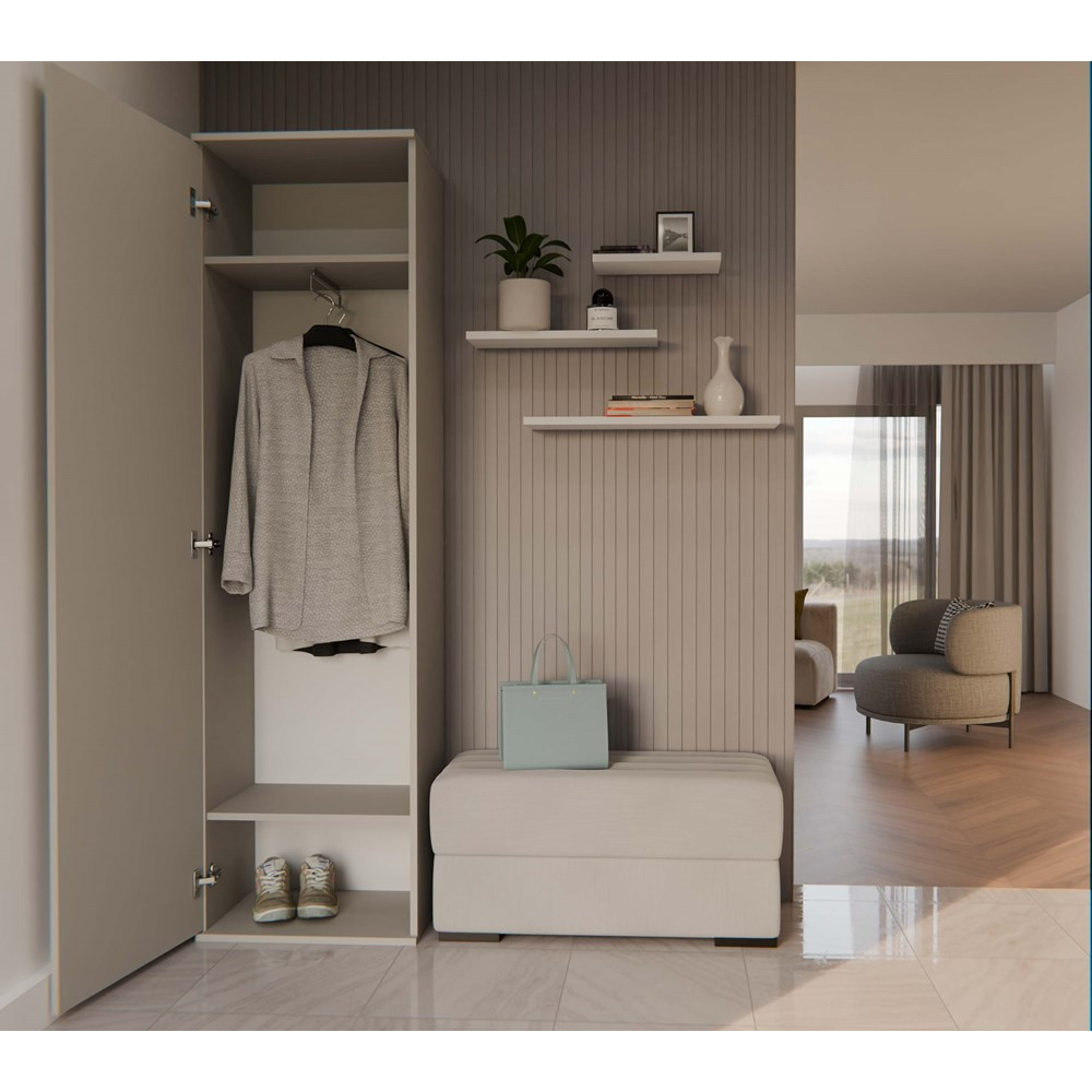 • Praktyczne Wnętrze: Wyposażona w dwie pojemne półki oraz uchwyt na wieszaki, co pozwala na wygodne przechowywanie ubrań i akcesoriów.