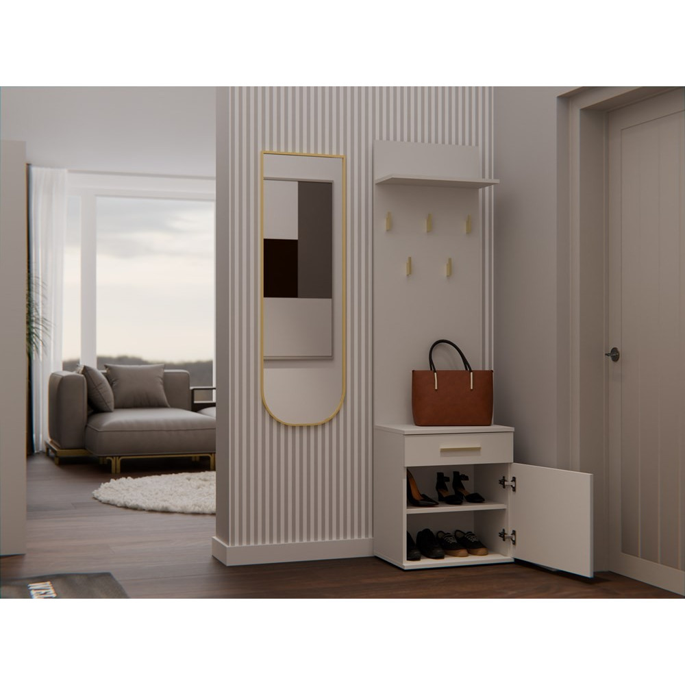 • Praktyczna szuflada oraz mniejsza szafka na buty