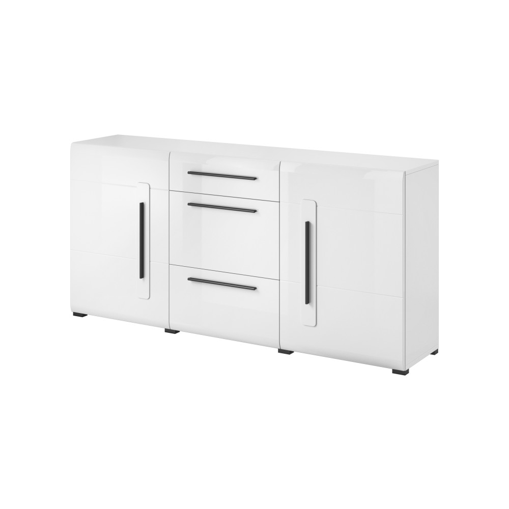 Komoda posiada 2 drzwi oraz 3 szuflady.