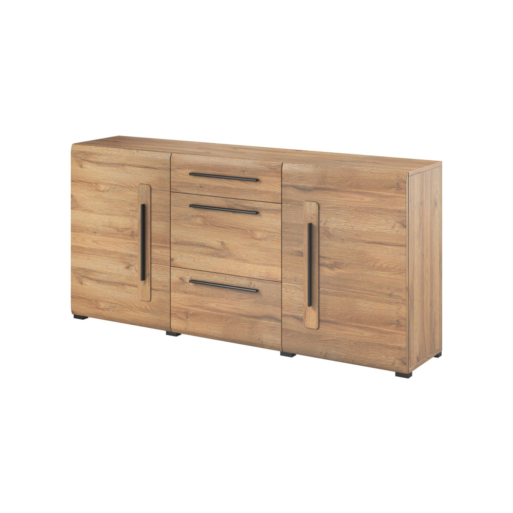 Komoda posiada 2 drzwi oraz 3 szuflady.