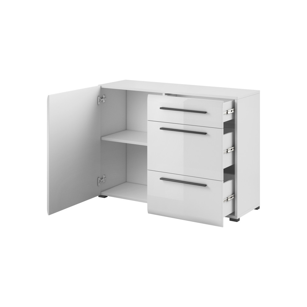 Komoda posiada 1 drzwi oraz 3 szuflady.