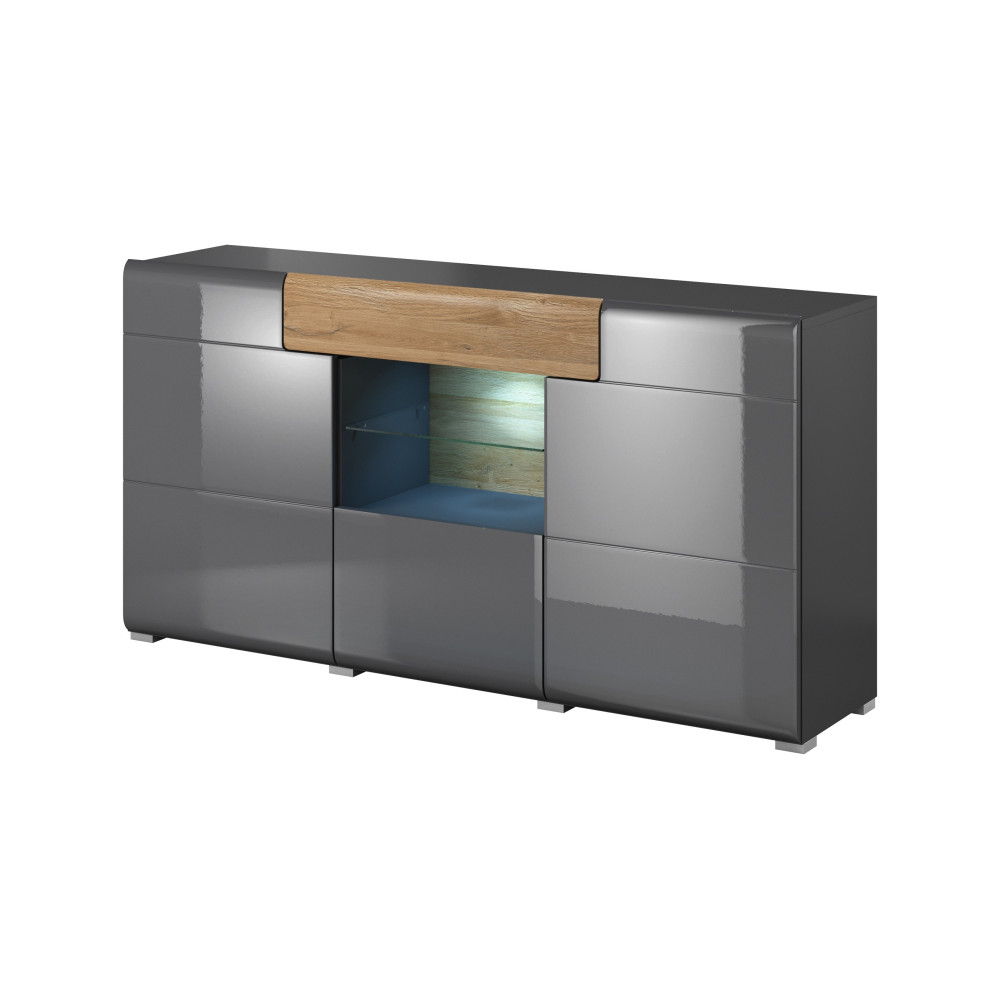 Komoda Toledo 3D1S Antracyt Połysk + Dąb Grandson