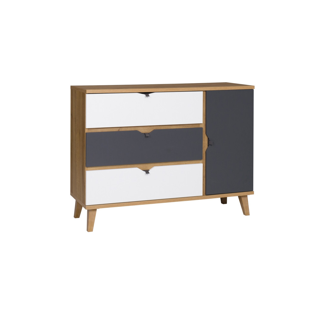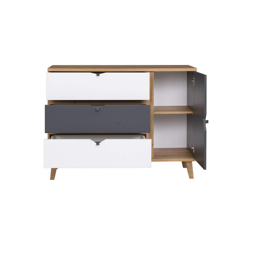 Komoda 1D3SZ Nome Biały/Dąb Złoty/Grafit