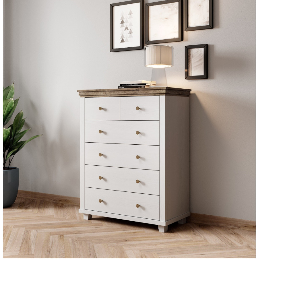 Komoda Evora 6S Biały Abiskoash/Dąb Lefkas