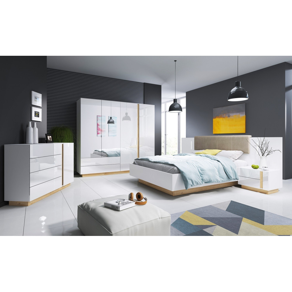 Oryginalna kolekcja mebli, która sprawi, że Twoje wnętrze stanie się nowoczesne i stylowe. Wszystko to za sprawą połysku na frontach, przełamanych dębowym kontrastującym akcentem.