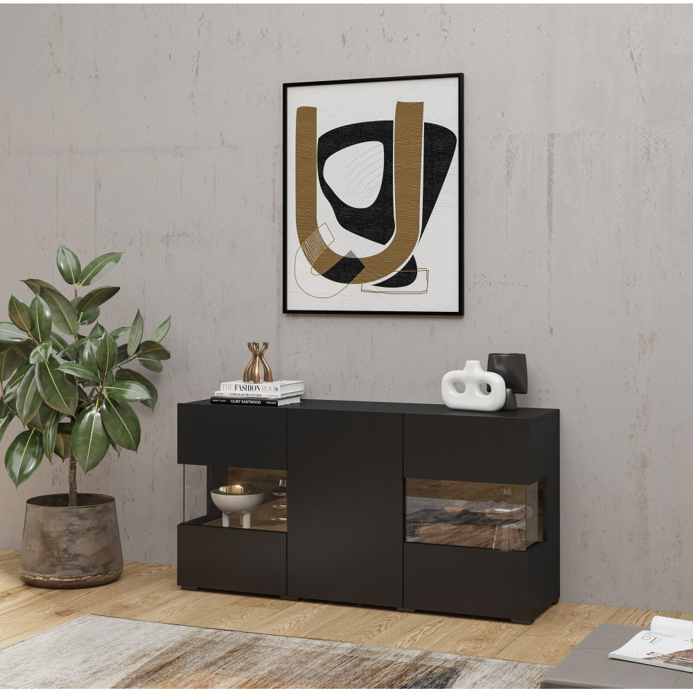 Komoda Eva 3D 25 Czarny/Dąb Wotan