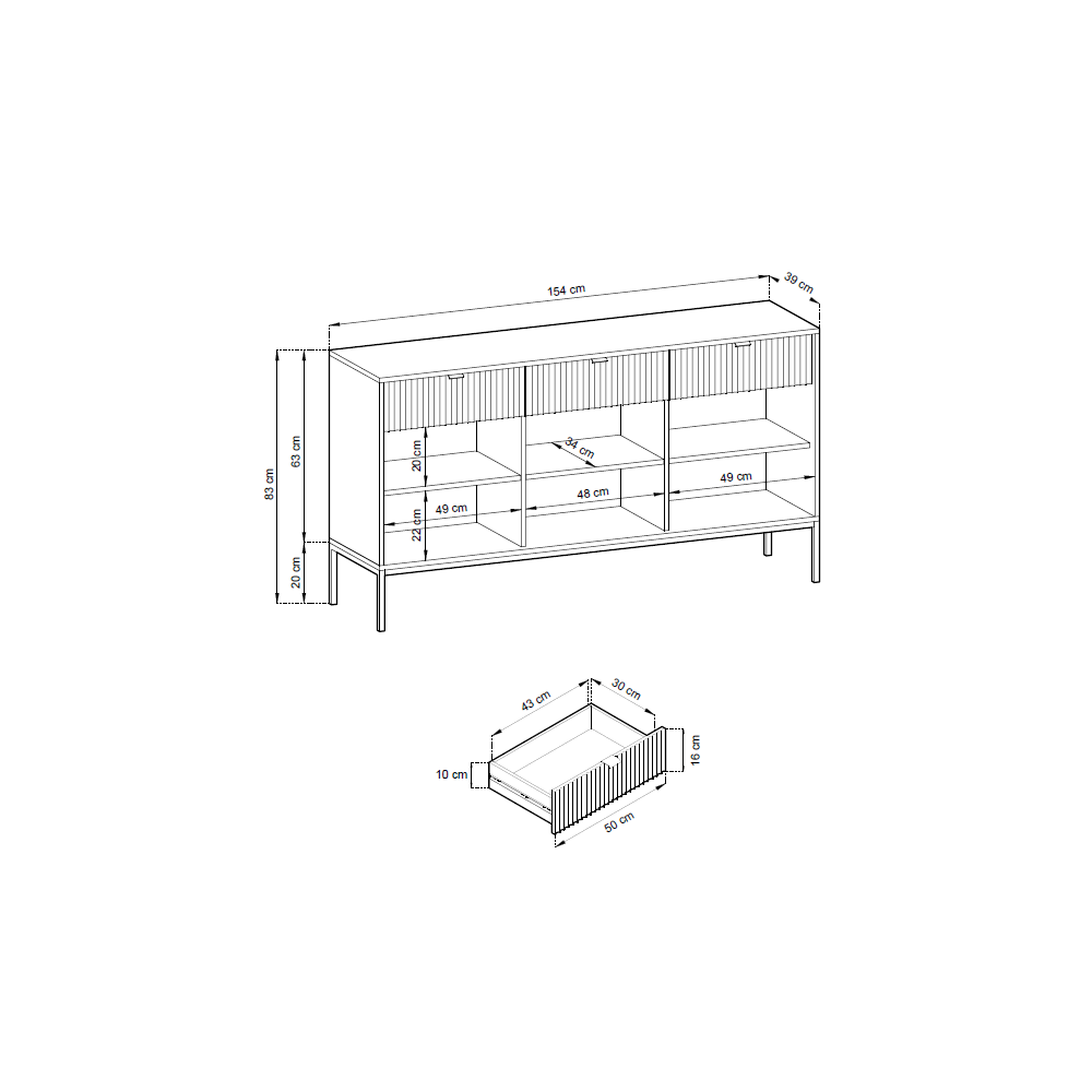 Komoda Viva 154 Szary Mat/Czarny stelaż