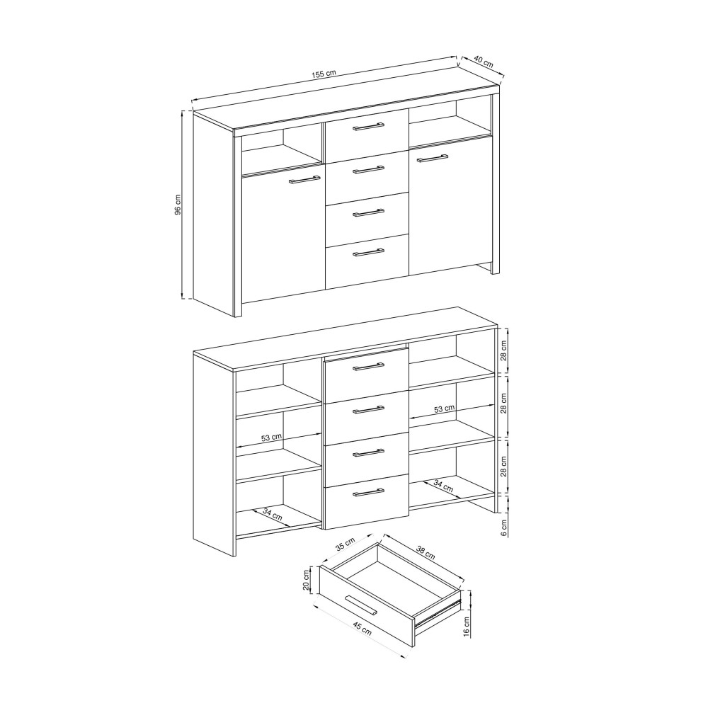 Ta komoda z kolekcji Emma to doskonałe rozwiązanie dla tych, którzy poszukują większej przestrzeni do przechowywania. Jej szerokość wynosząca 155 cm zapewnia dodatkową funkcjonalność, nie rezygnując przy tym z eleganckiego designu.