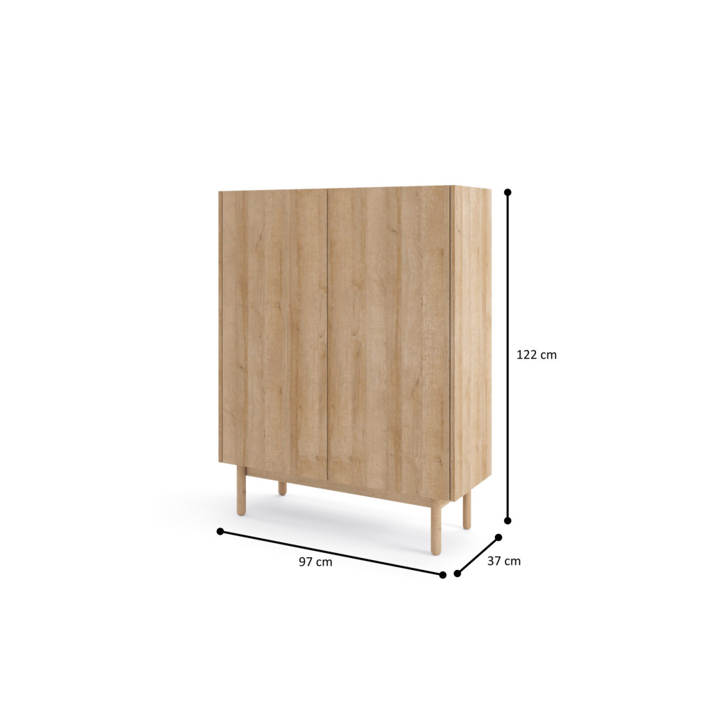 Z wysokością 122 cm, ta komoda wyróżnia się swoją imponującą obecnością. Stanowi zarówno praktyczny element przechowywania, jak i piękny element dekoracyjny w Twoim wnętrzu.