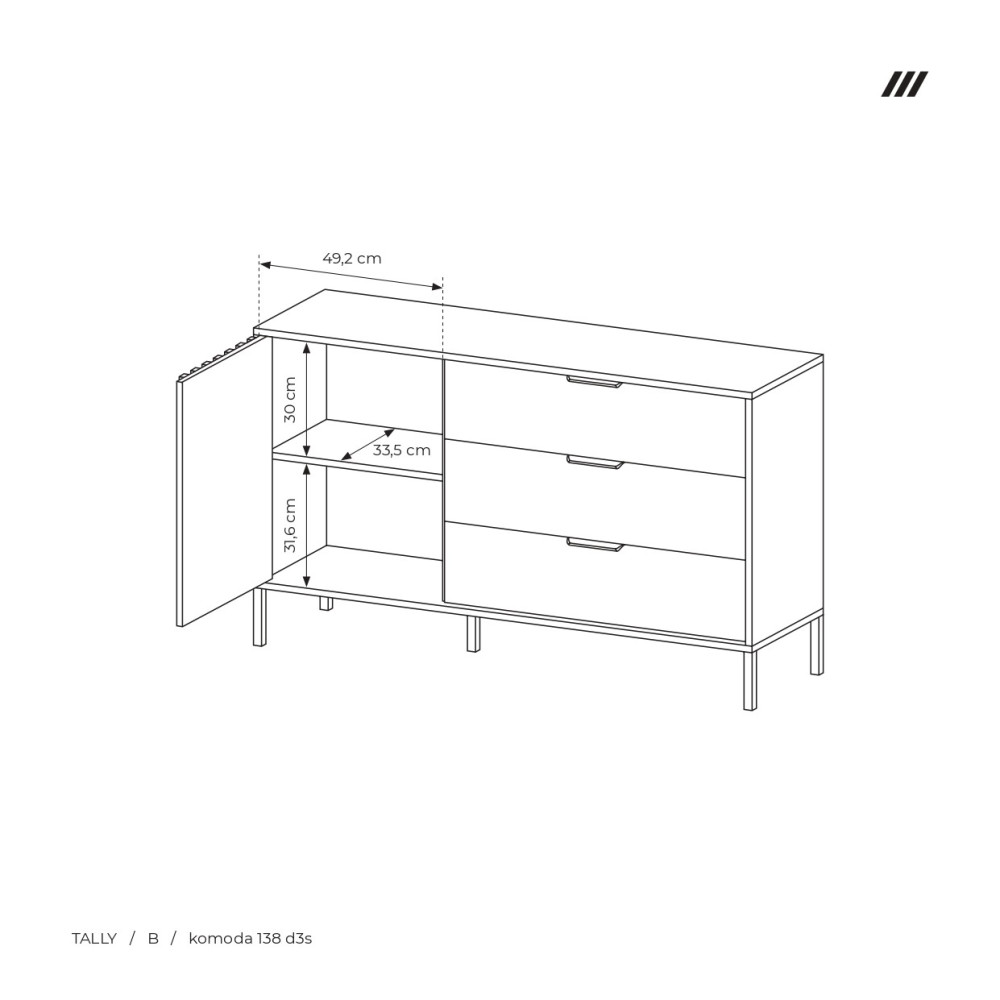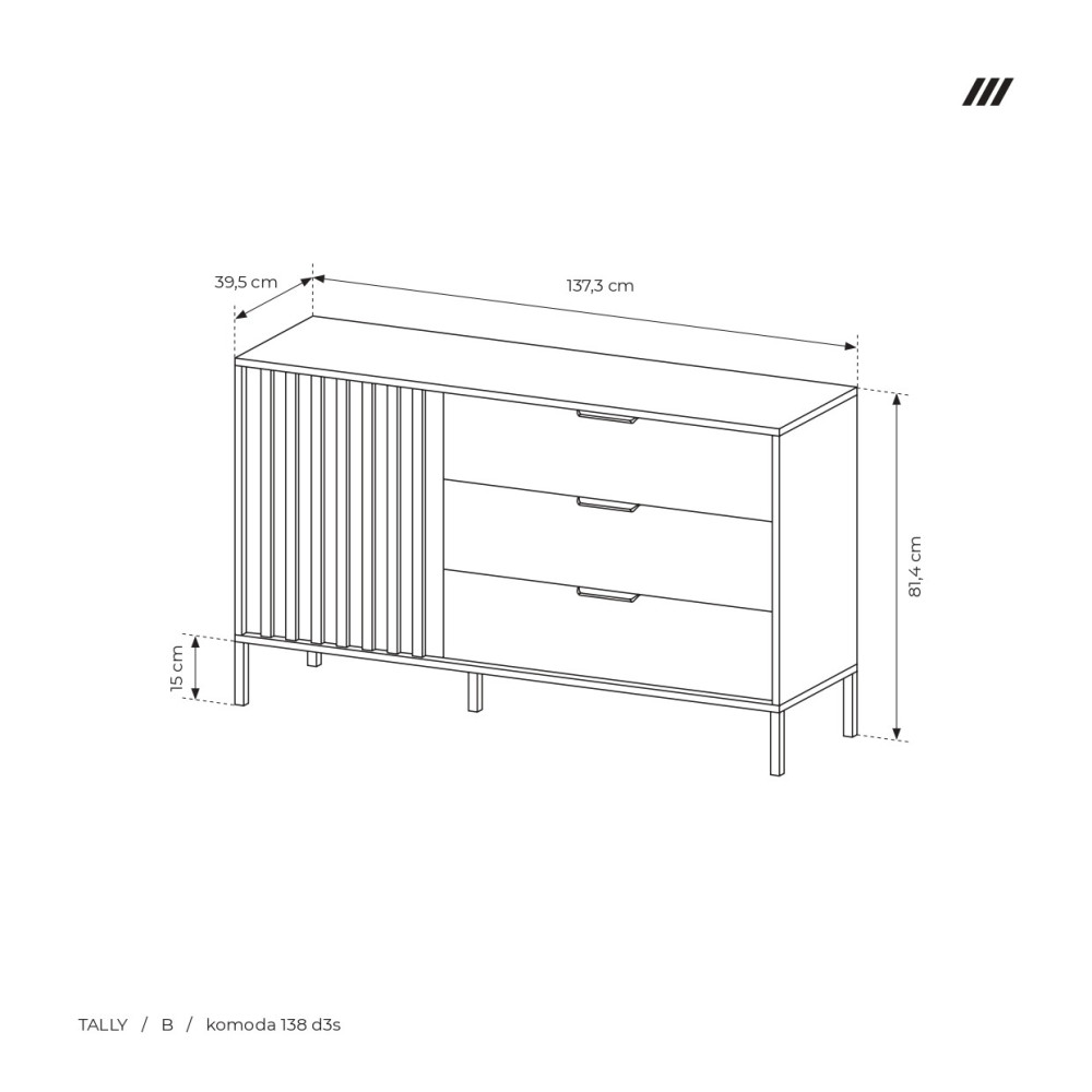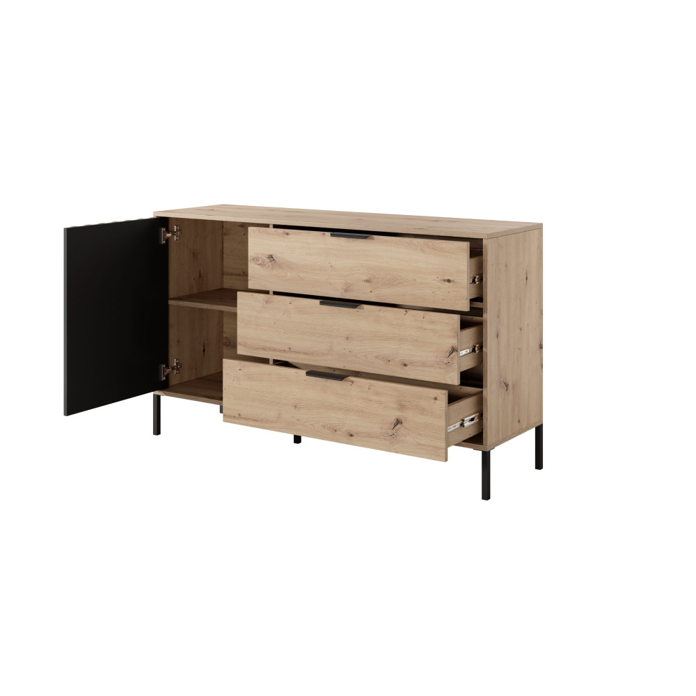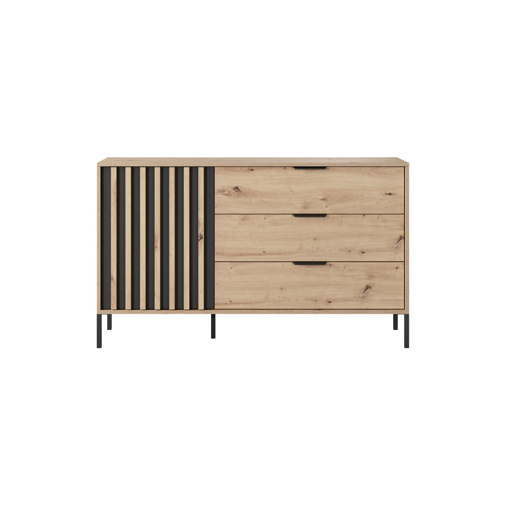 Uzupełnij swoją sypialnię o stylową i praktyczną komodę z kolekcji Caden. Ta kompaktowa komoda o subtelnym wzornictwie i solidnej konstrukcji stanie się nie tylko doskonałym miejscem do przechowywania, ale także dekoracyjnym elementem Twojej przestrzeni. Jej korpus wykonany z płyty wiórowej laminowanej o grubości 16 mm w odcieniu dąb artisan emanuje ciepłem i elegancją. Front w połączeniu dębu artisan i antracytu dodaje kontrastu i nowoczesności. Metalowe uchwyty w czarnym kolorze nadają komodzie charakteru, a solidne metalowe nóżki w czarnym kolorze zapewniają stabilność.