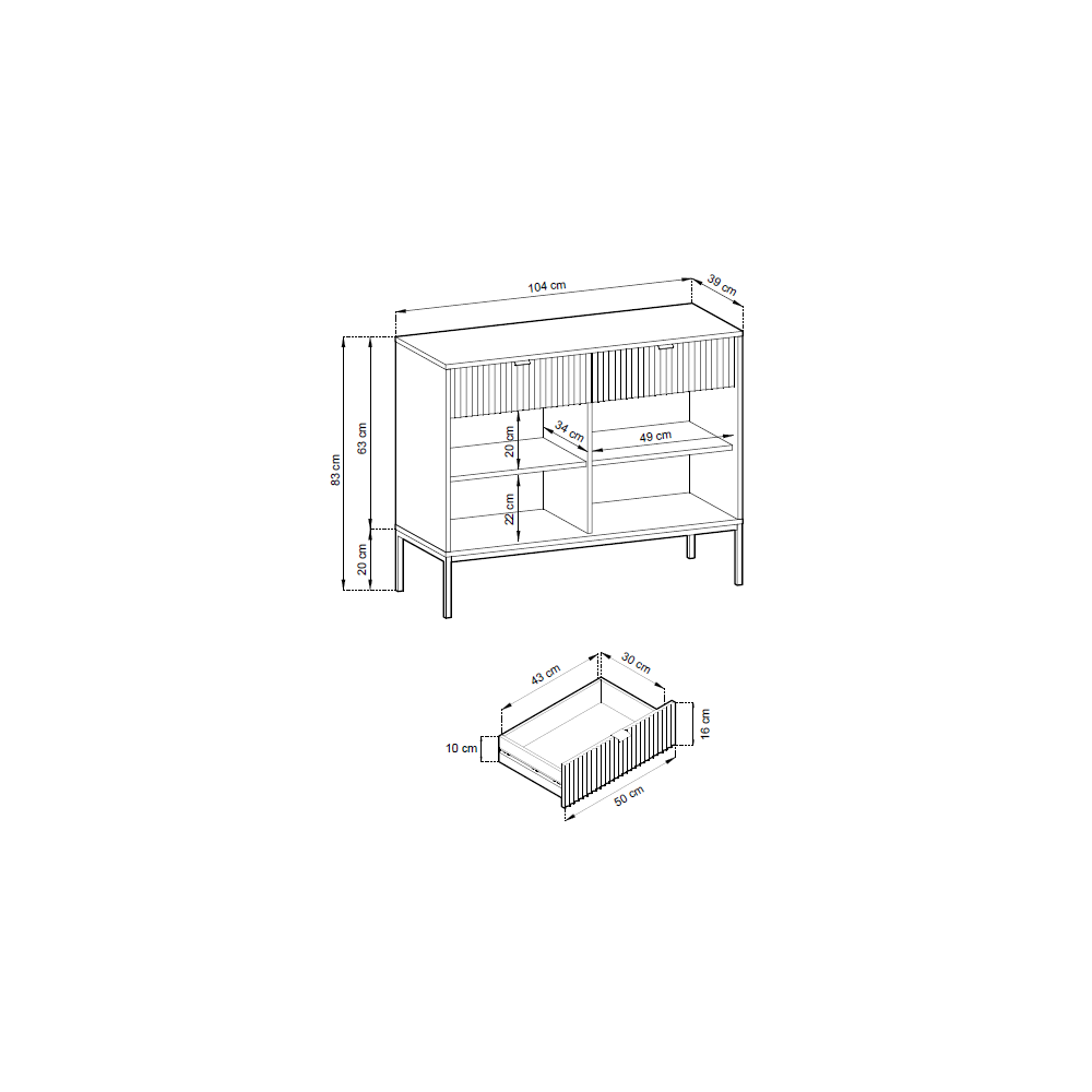 Wszystkie meble w systemie Viva posiadają ryflowane fronty, które dodają im tekstury i stylu.