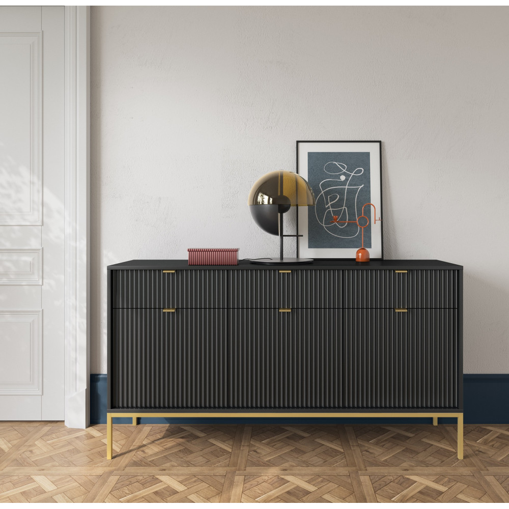 Komoda Viva 154 Czarny Mat/Złoty stelaż
