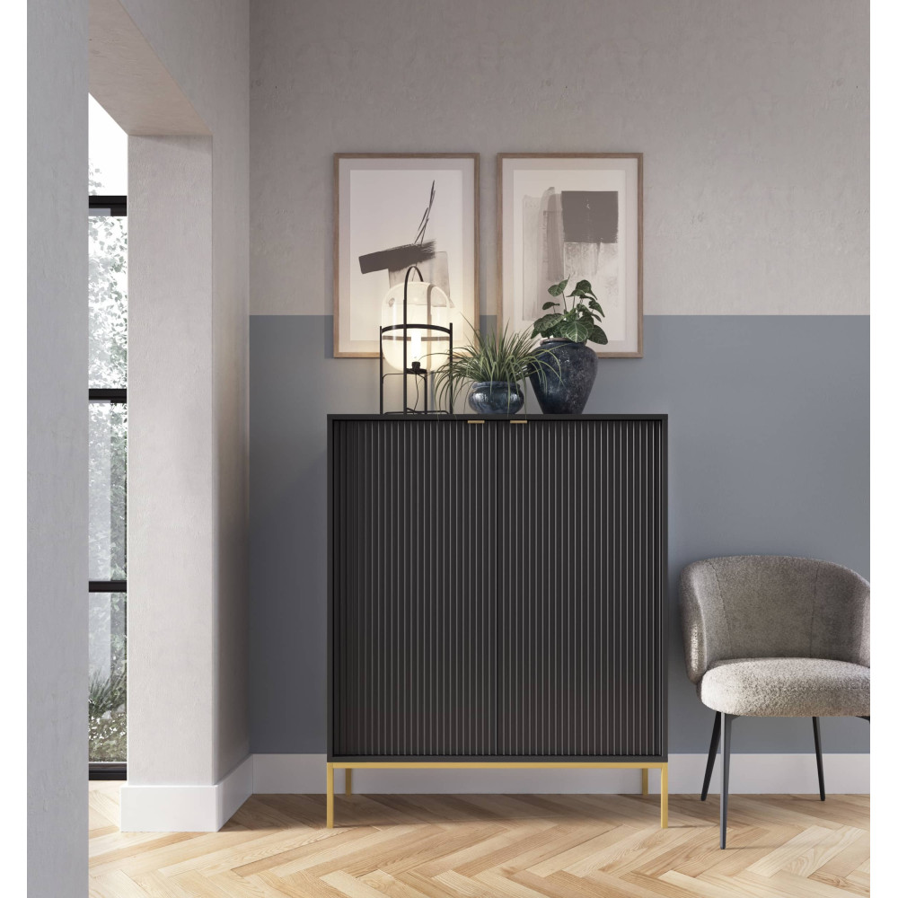 Komoda Viva 2D 104 Czarny Mat/Złoty stelaż