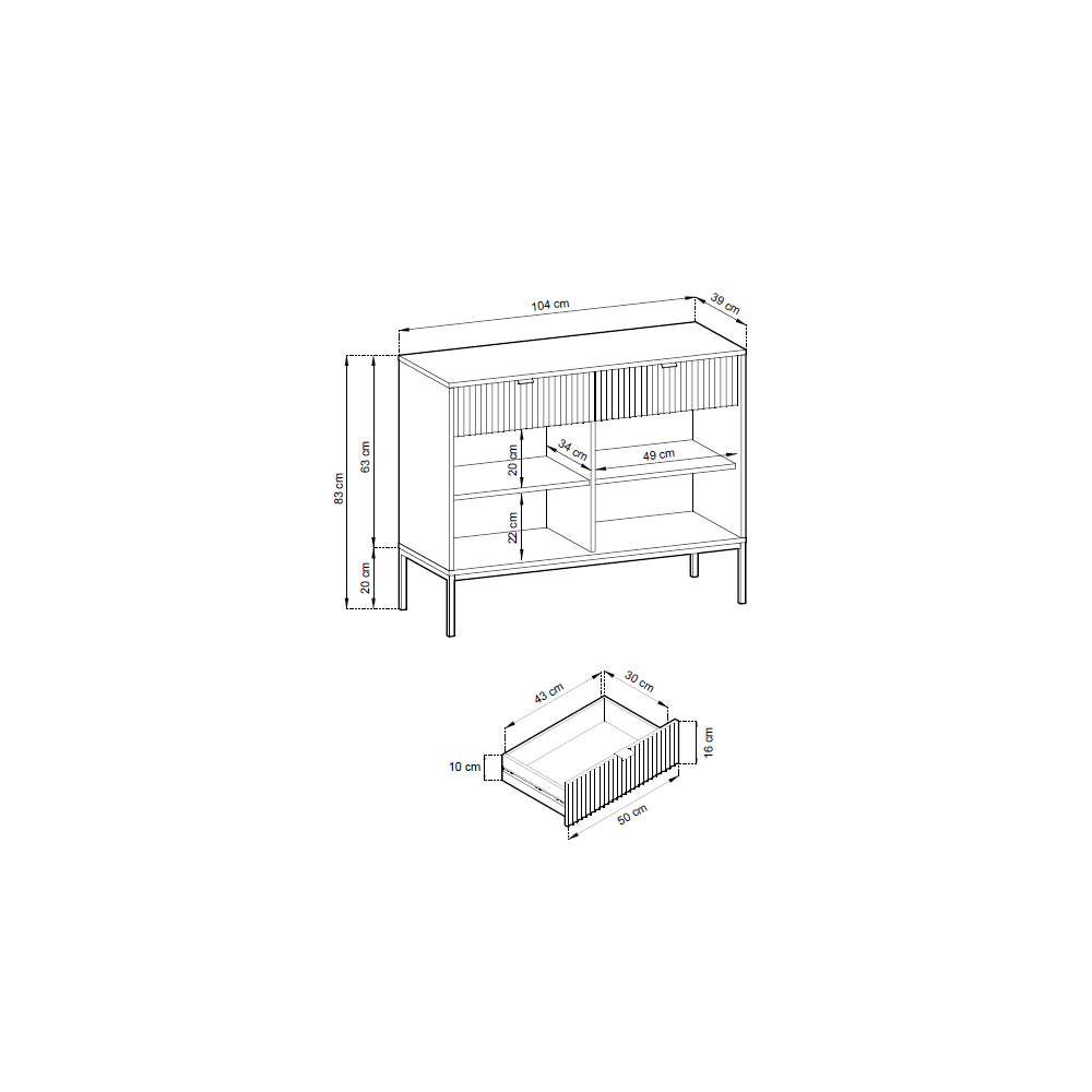 Wszystkie meble w systemie Viva posiadają ryflowane fronty, które dodają im tekstury i stylu.