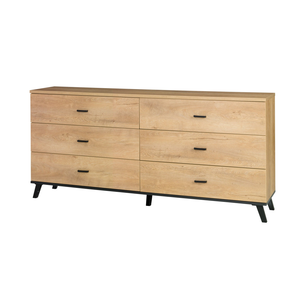 Komoda Tatiana cechuje się wysoką jakością wykonania z użyciem płyty laminowanej, co gwarantuje trwałość i łatwość w utrzymaniu czystości. Materiał ten jest odporny na zarysowania i uszkodzenia, dzięki czemu komoda będzie służyć przez wiele lat, zachowując swój pierwotny wygląd. Jej uniwersalny design sprawia, że doskonale wpasuje się w różnorodne style wnętrz, zarówno nowoczesne, jak i klasyczne. Prosta forma i neutralna kolorystyka komody Tatiana umożliwiają łatwe dopasowanie jej do istniejącej aranżacji pomieszczenia. Tył komody wykonany z płyty HDF dodatkowo wzmacnia konstrukcję mebla, zapewniając stabilność i trwałość. Podwyższone nóżki z kolei ułatwiają utrzymanie czystości pod komodą.