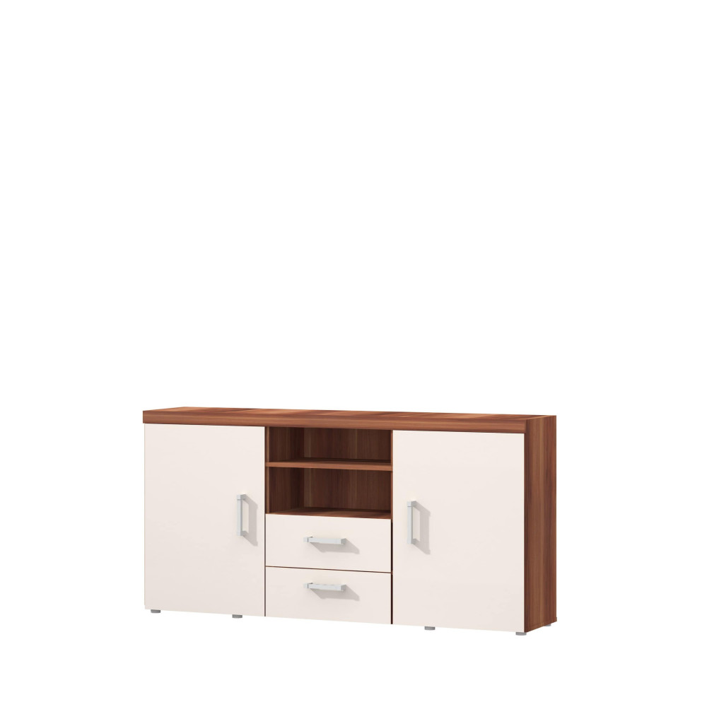 Komoda Rumba emanuje elegancją i solidnością dzięki swojej starannie wykonanej konstrukcji i wysokiej jakości materiałom. Jej powierzchnia, wykonana z trwałych płyt laminowanych, prezentuje się wyjątkowo gładko i lśniąco, nadając wnętrzu pomieszczenia nutę nowoczesności.