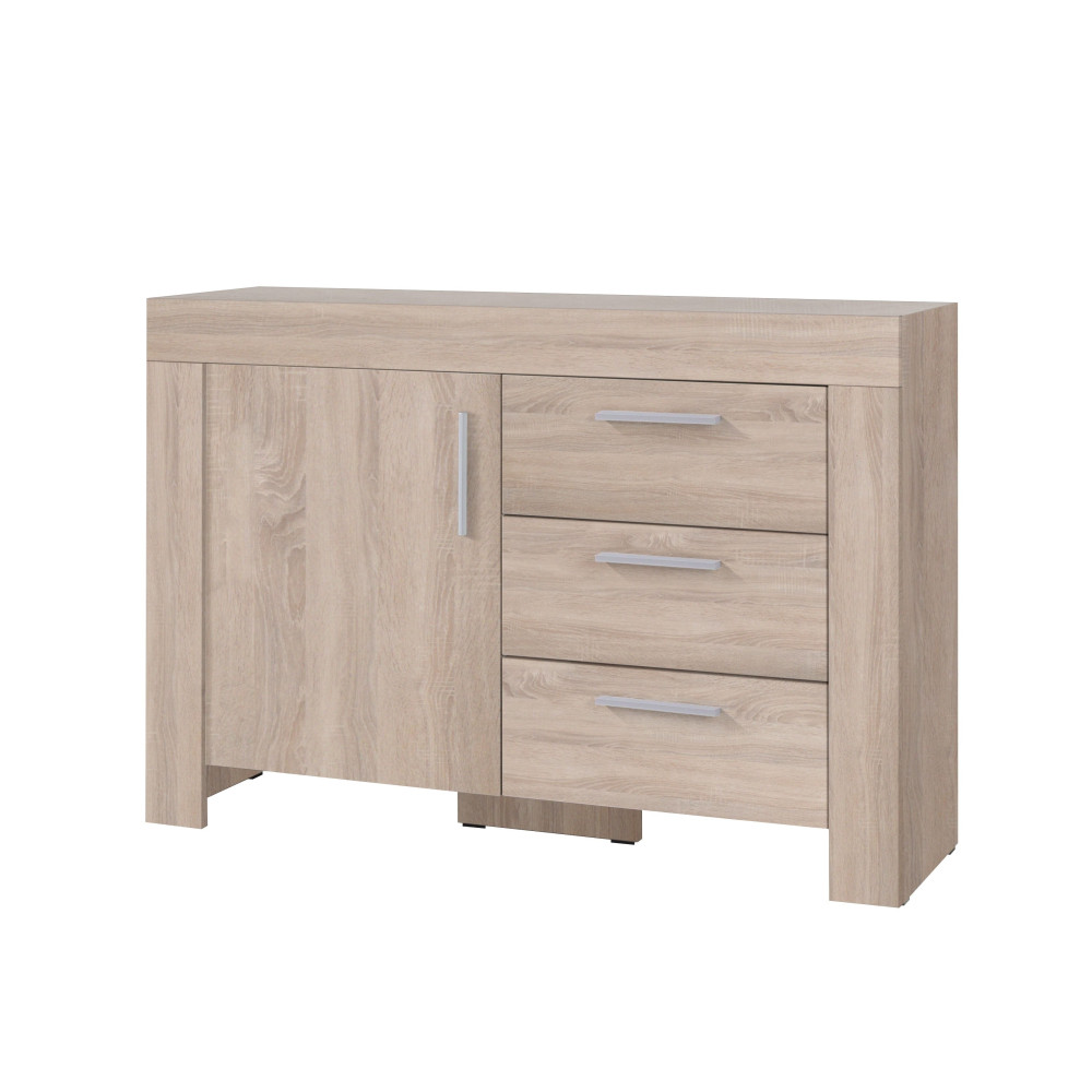 Komoda Samanta to eleganckie i praktyczne rozwiązanie do przechowywania ubrań i innych rzeczy. Wykonana jest z wysokiej jakości materiałów, w tym z płyty laminowanej na froncie oraz tylnej części z HDF, co zapewnia trwałość i solidność konstrukcji.