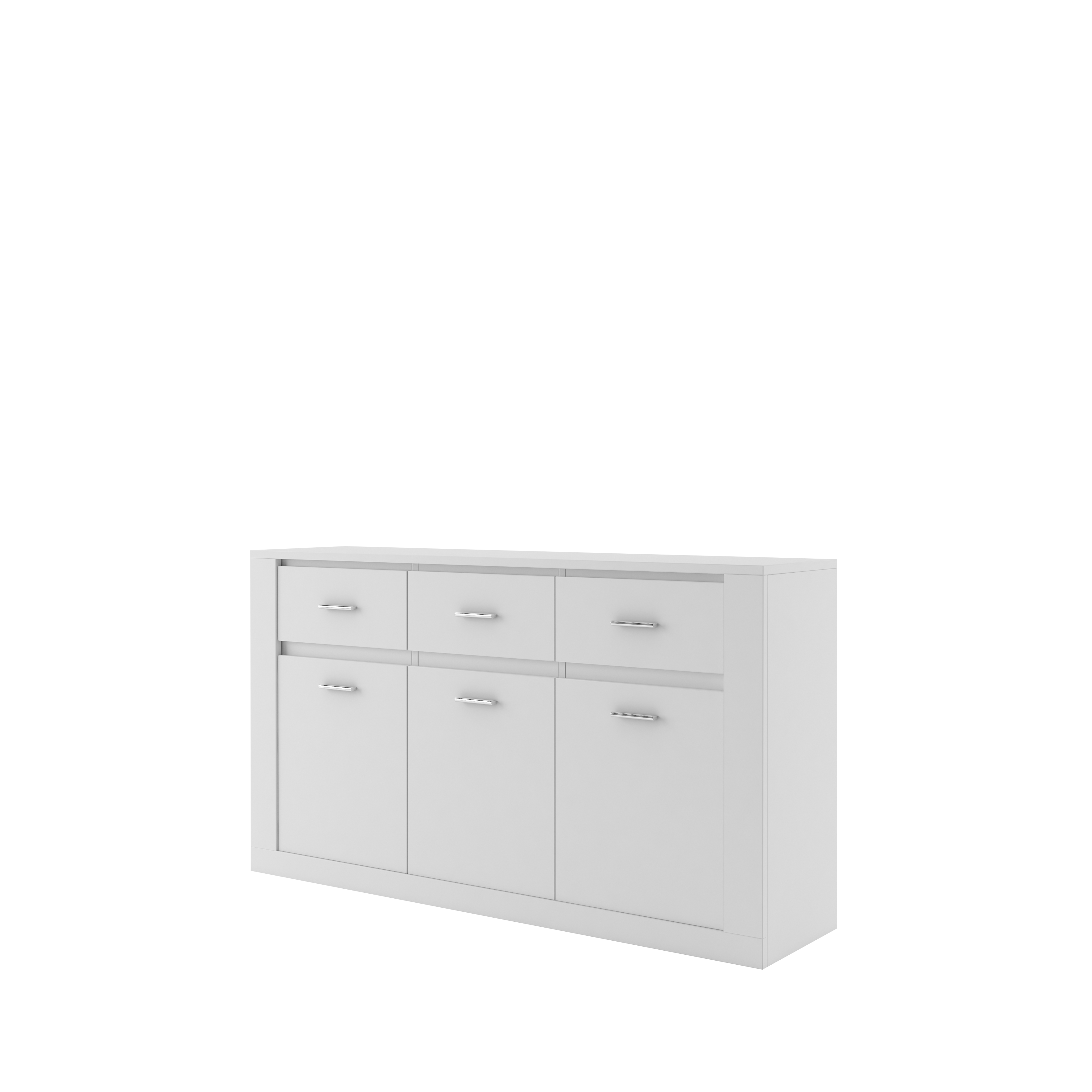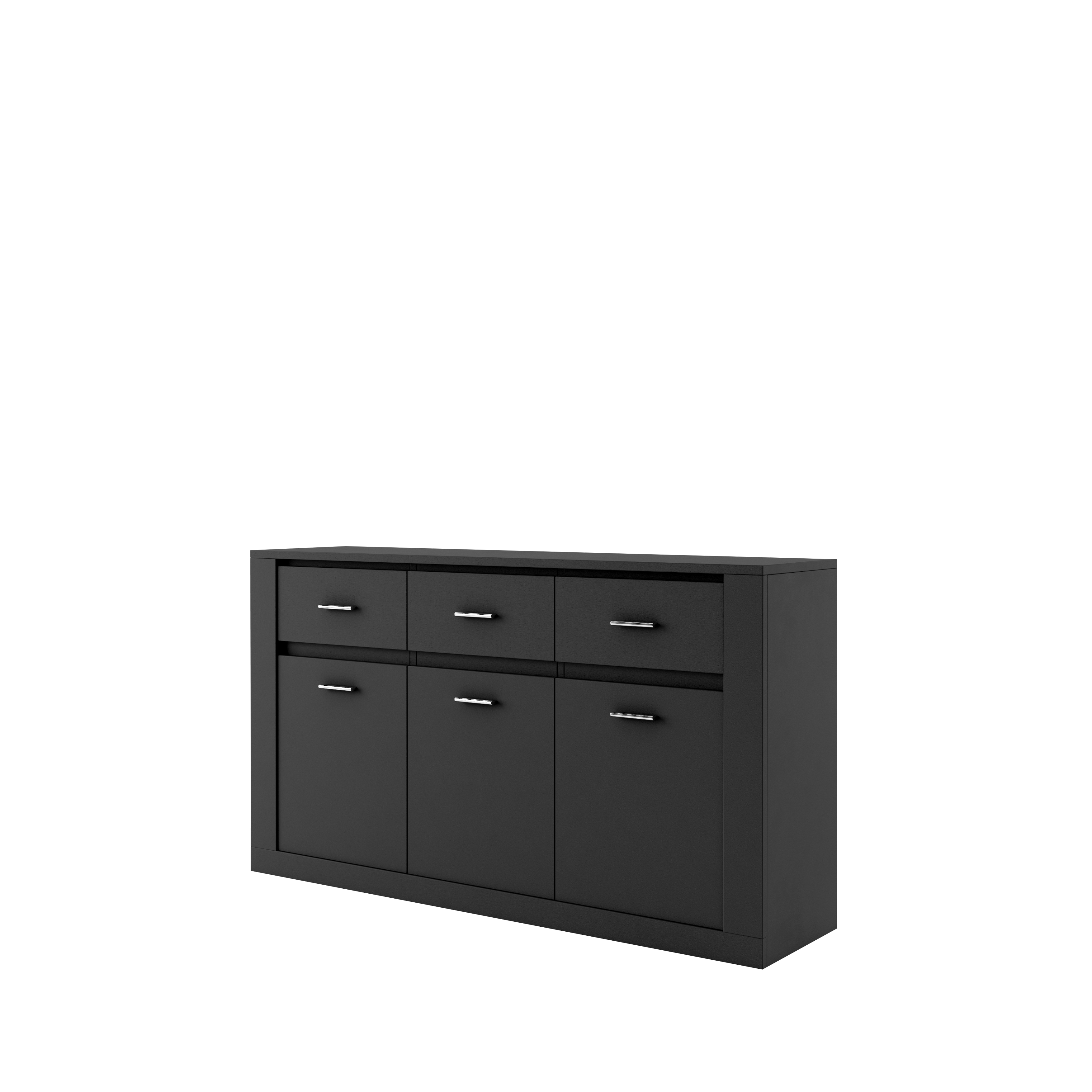 Komoda o eleganckim i funkcjonalnym designie, która sprawdzi się w każdym pomieszczeniu, oferując dużą przestrzeń do przechowywania. Wyposażona jest w trzy pojemne szuflady, które doskonale nadają się do przechowywania drobniejszych przedmiotów, takich jak dokumenty, akcesoria czy tekstylia. Poniżej szuflad znajdują się obszerne szafki z drzwiczkami, które zapewniają dodatkową przestrzeń na większe przedmioty, takie jak naczynia, ubrania lub sprzęt domowy. Komoda została wykonana z wytrzymałej płyty, co gwarantuje trwałość i solidność konstrukcji, dzięki czemu będzie służyła przez lata. Dostępna jest w trzech wersjach kolorystycznych: białej, czarnej oraz dąb artisan, co pozwala na idealne dopasowanie jej do różnych stylów wnętrzarskich. Dzięki neutralnej kolorystyce i nowoczesnemu wyglądowi komoda wpisuje się zarówno w nowoczesne, jak i klasyczne aranżacje wnętrz, dodając im stylowego charakteru i praktyczności.