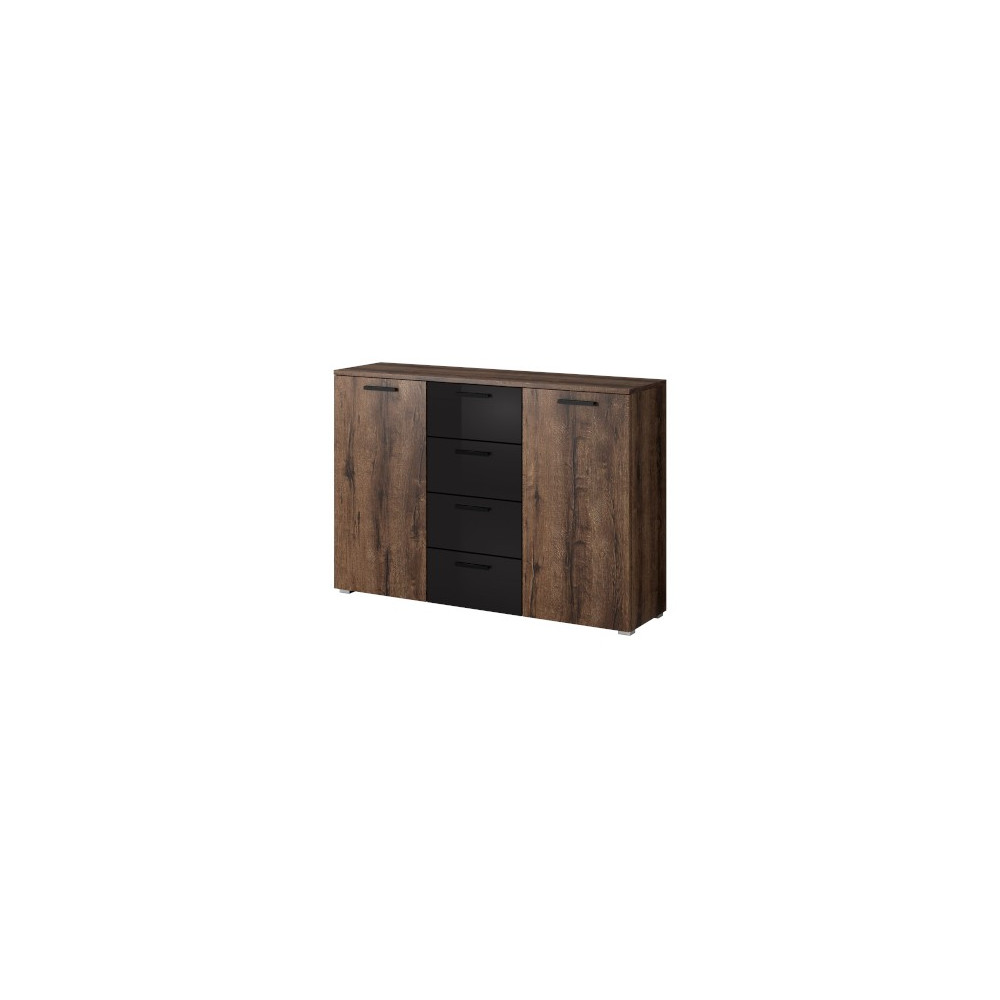 Komoda Lako posiada dwoje drzwi oraz cztery szuflady.