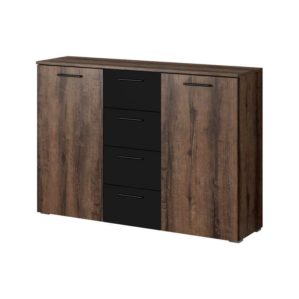 Komoda Teba posiada dwoje drzwi oraz 4 szuflady.