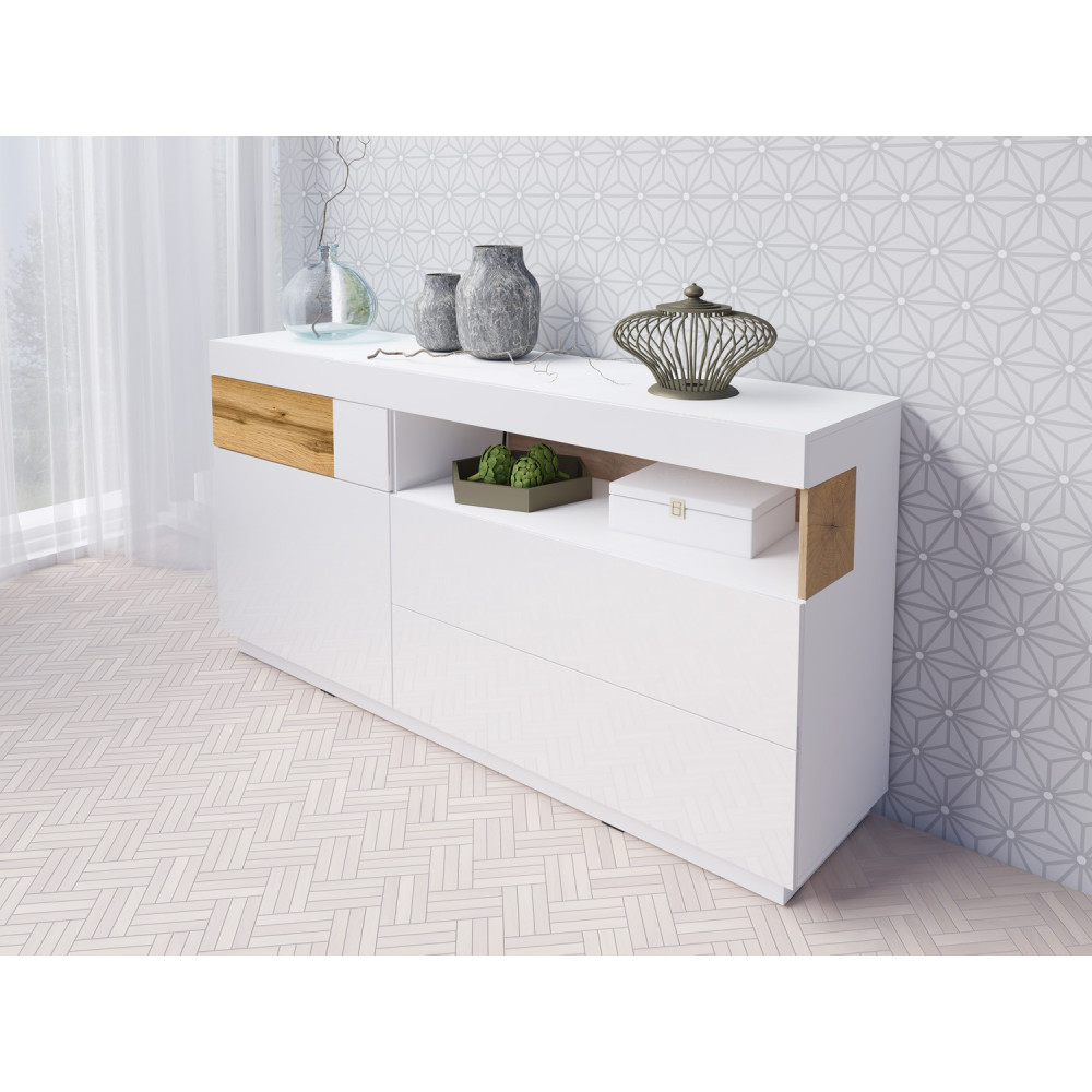 Komoda Keli 1D3S 47 Biały+Biały Połysk+Dąb Wotan