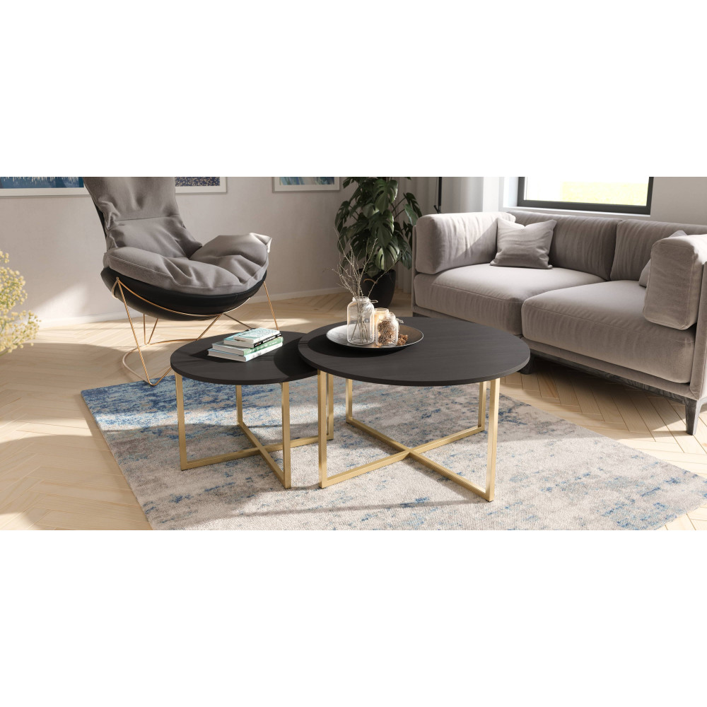 Ława posiada złote, wysokie nogi, które dodają meblowi eleganckiego wyglądu i stabilności. Jej uniwersalny design pozwala na różnorodne zastosowania - jako miejsce do siedzenia, stolik kawowy lub podstawka pod dekoracje.