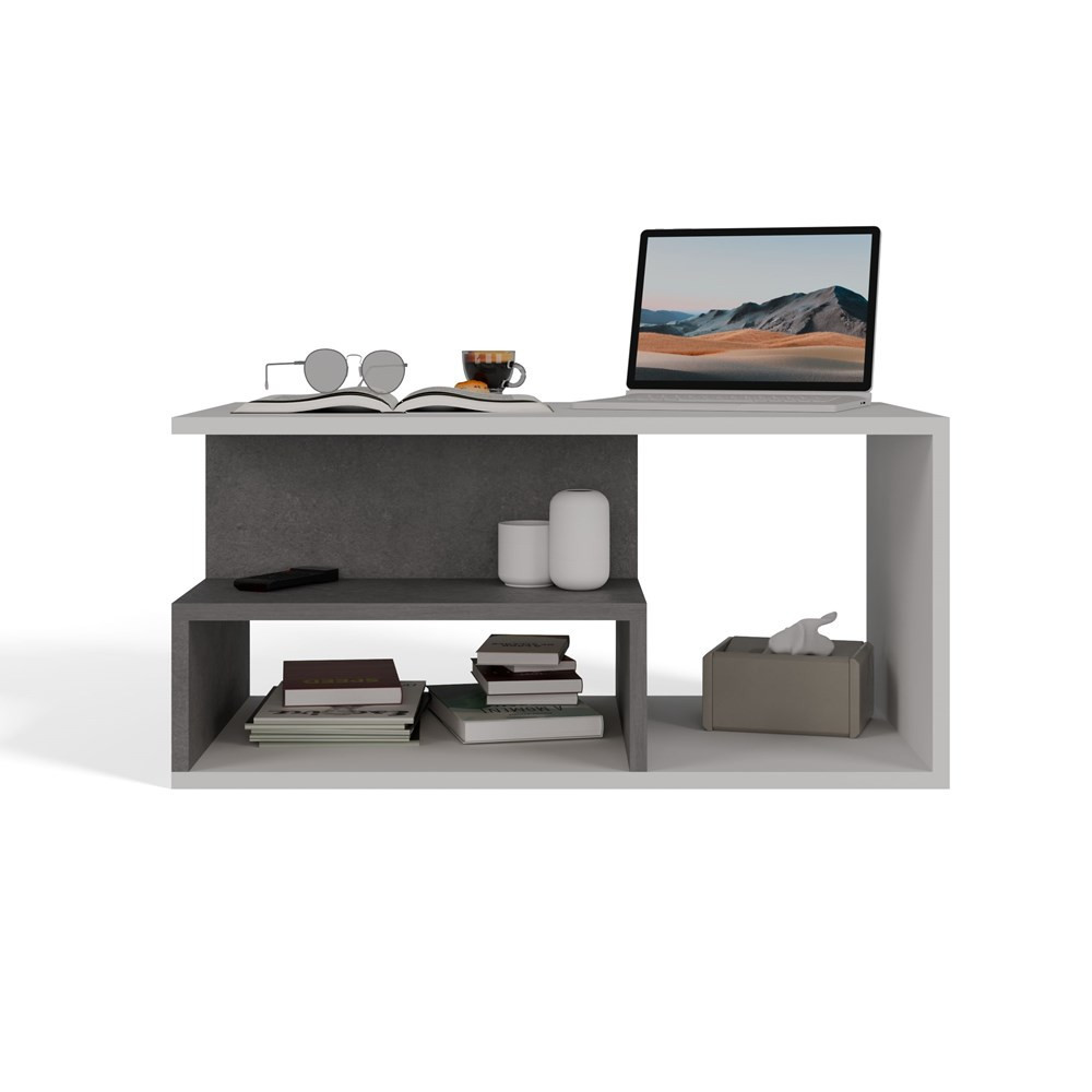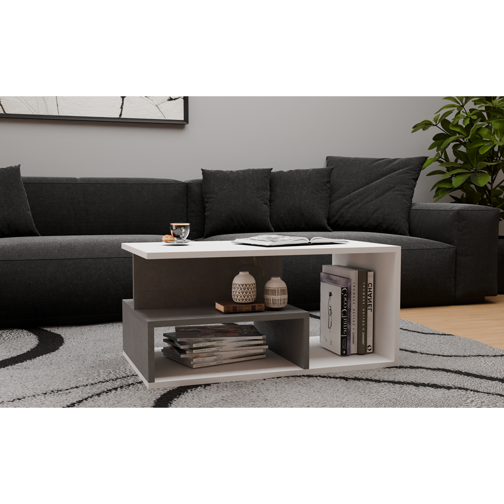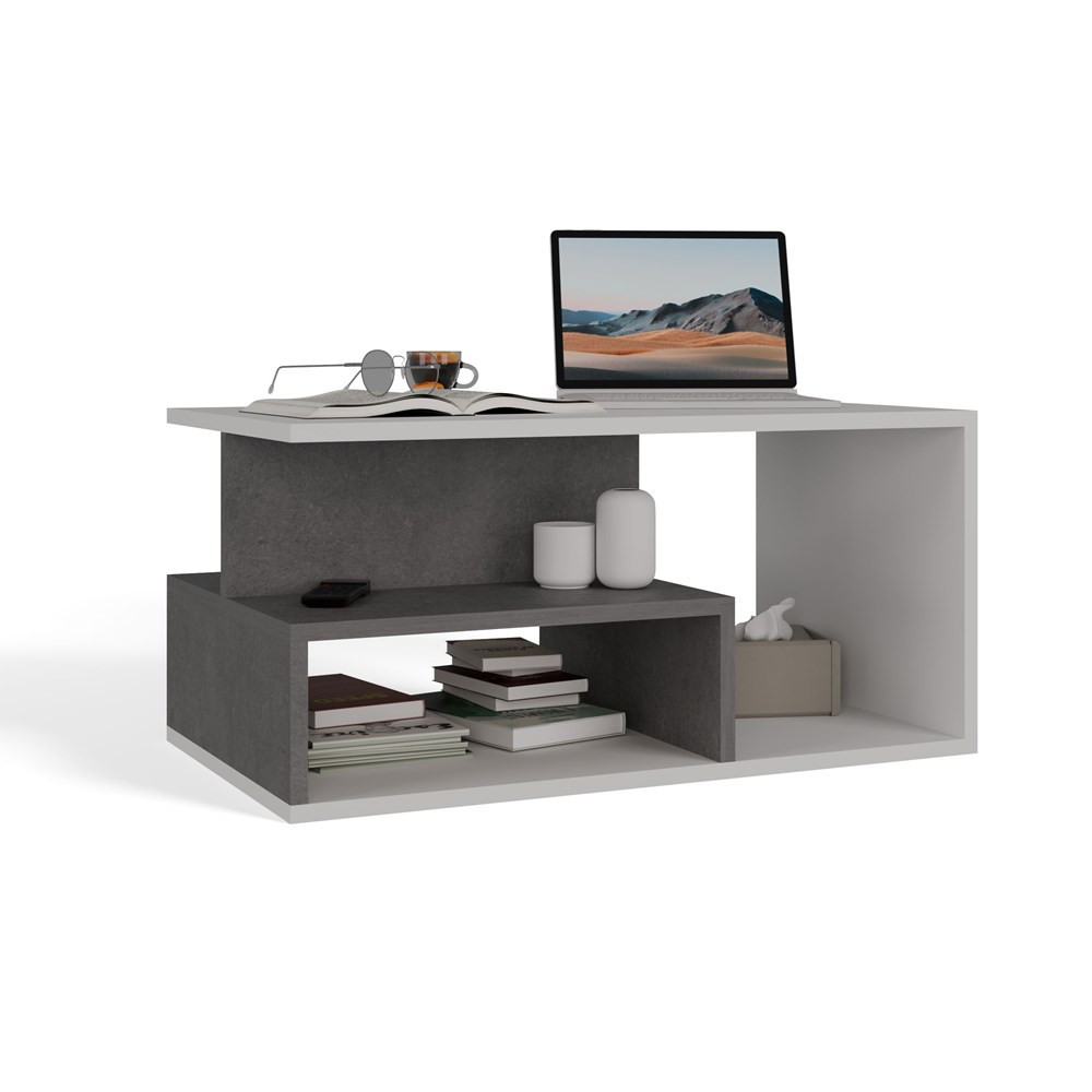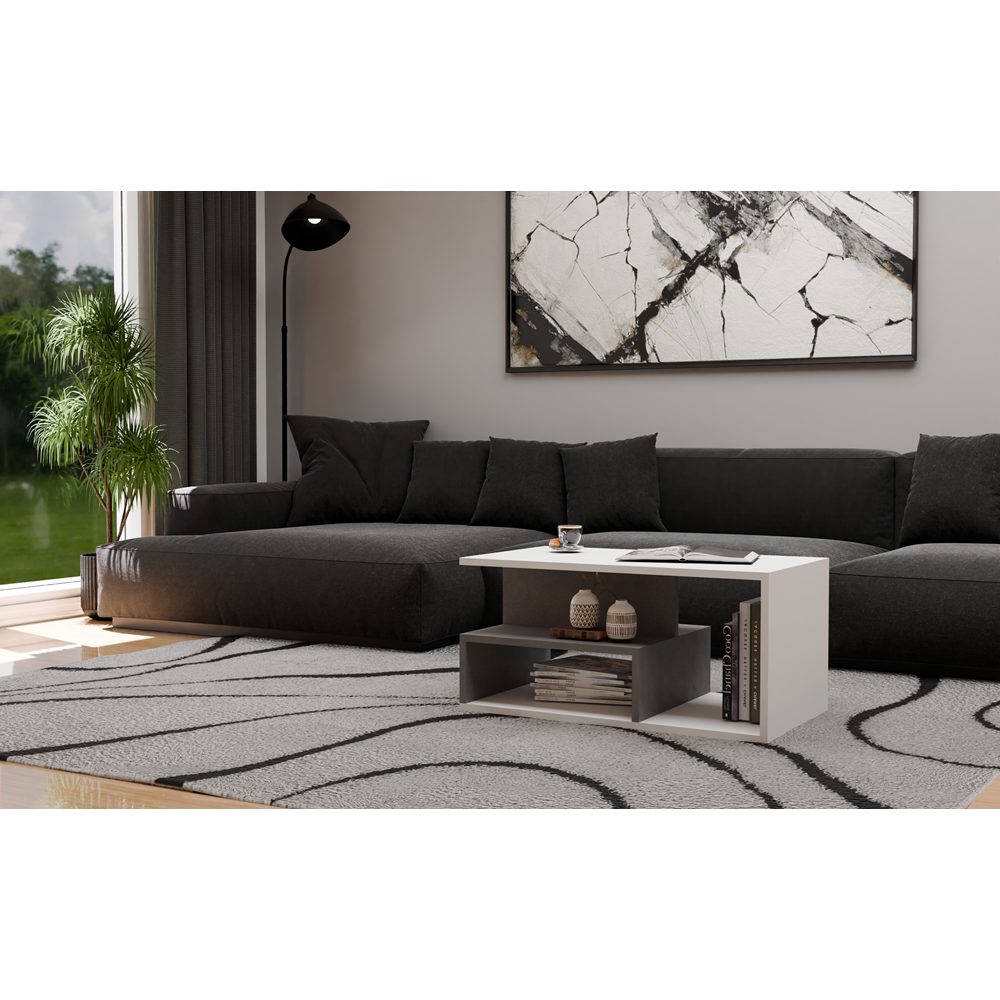 Ława kawowa wykonana z solidnej płyty laminowanej wraz z dodatkową półką na przedmioty codziennego użytku. Świetnie nadaje się do nowoczesnych salonów, mniejszych pokoi, czy eleganckich biur.