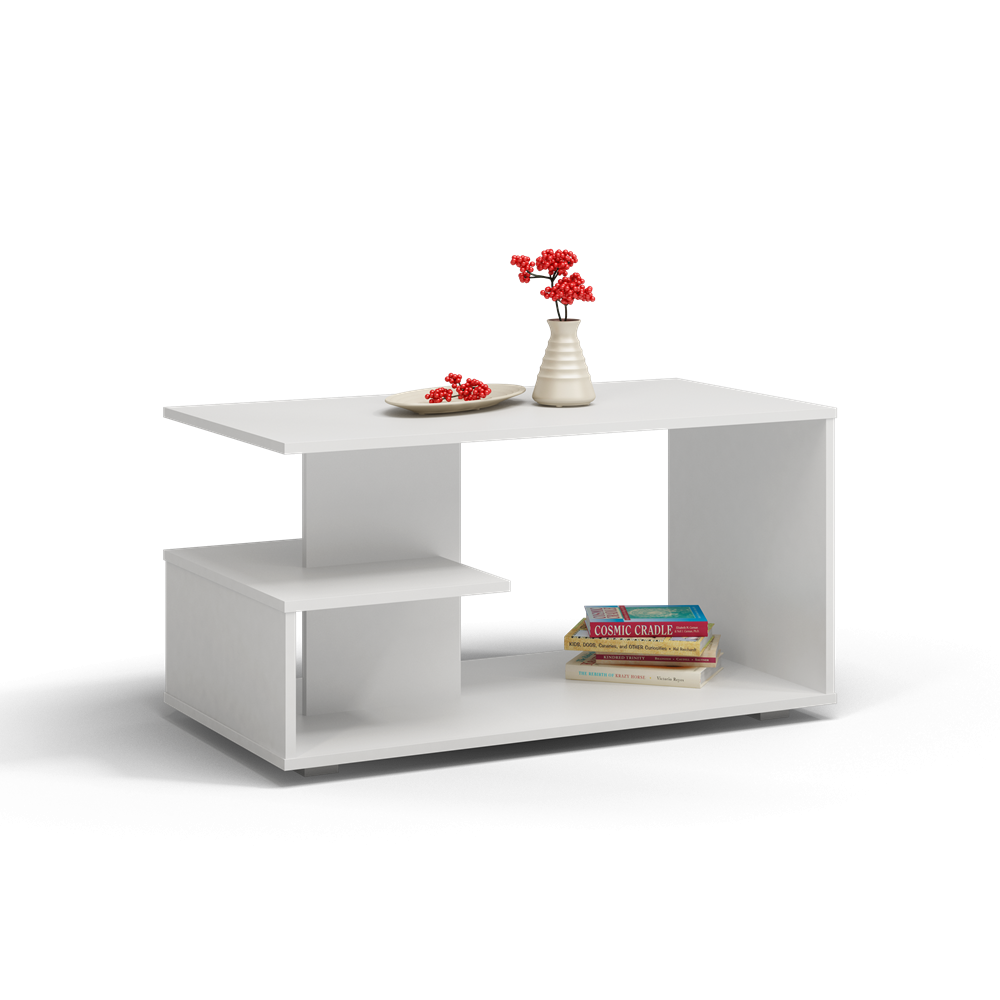 Ława kawowa wykonana z solidnej płyty laminowanej wraz z dodatkową półką na przedmioty codziennego użytku. Świetnie nadaje się do nowoczesnych salonów, mniejszych pokoi, czy eleganckich biur.