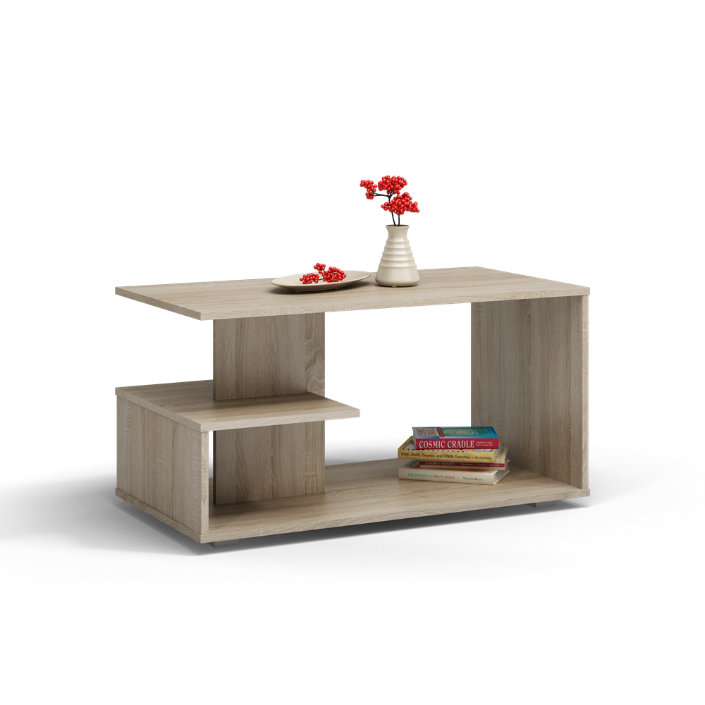 Ława kawowa wykonana z solidnej płyty laminowanej wraz z dodatkową półką na przedmioty codziennego użytku. Świetnie nadaje się do nowoczesnych salonów, mniejszych pokoi, czy eleganckich biur.