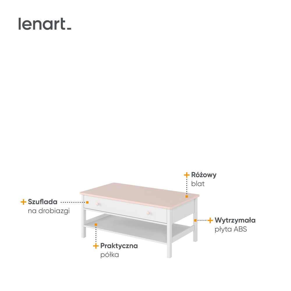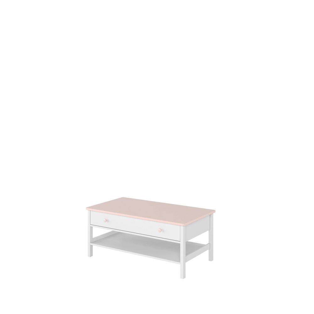 Stolik wolnostojący w białym kolorze z różowymi akcentami to praktyczny dodatek do każdego wnętrza. Wyposażony w szufladę na drobiazgi oraz otwartą półkę, idealnie nadaje się do przechowywania książek, dekoracji i codziennych akcesoriów. Jego elegancki design wprowadza lekkość i styl, doskonale wpisując się w romantyczne aranżacje.