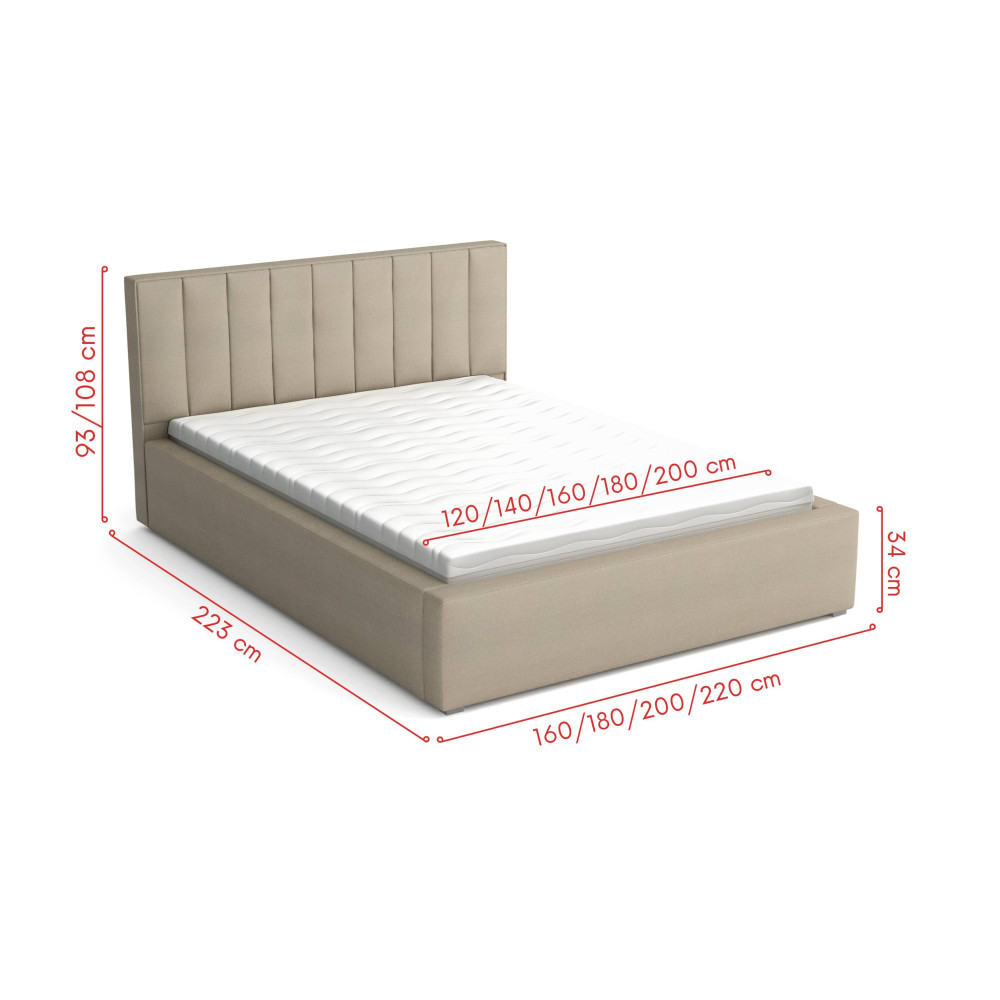• Rodzaj stelaża – stelaż metalowy na automacie gazowym (34 listwy) + pojemnik na pościel dwukomorowy na całości powierzchni spania - Materac osadza się 10 cm w ramie łóżka