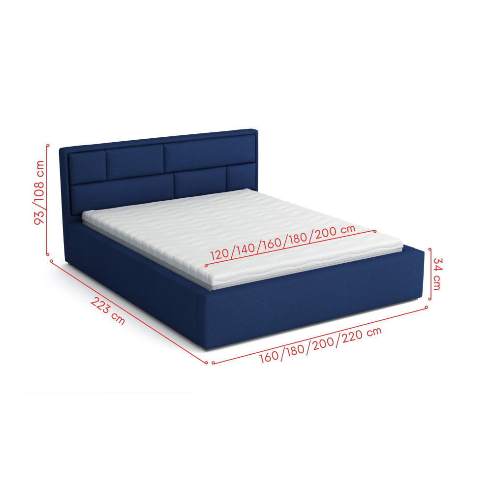• Rodzaj stelaża – stelaż metalowy na automacie gazowym (34 listwy) + pojemnik na pościel dwukomorowy na całości powierzchni spania - Materac osadza się 10 cm w ramie łóżka