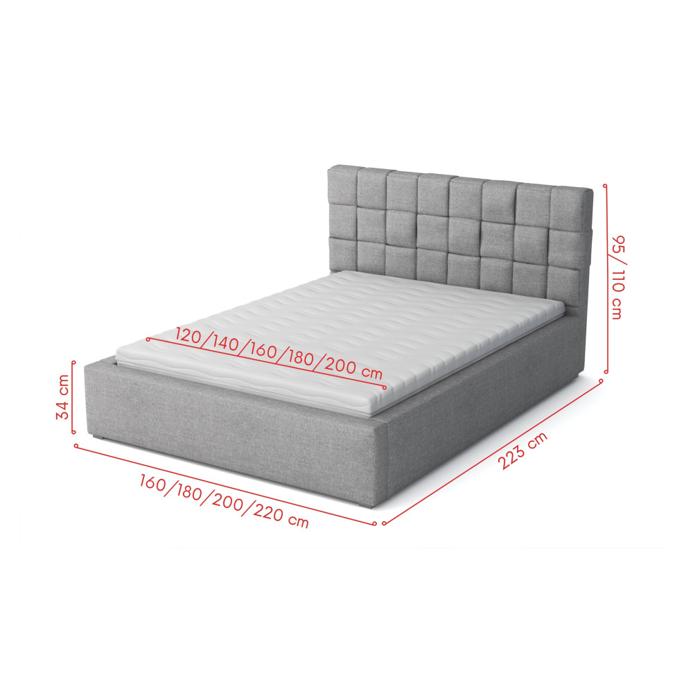 • Rodzaj stelaża – stelaż metalowy na automacie gazowym (34 listwy) + pojemnik na pościel dwukomorowy na całości powierzchni spania - Materac osadza się 10 cm w ramie łóżka