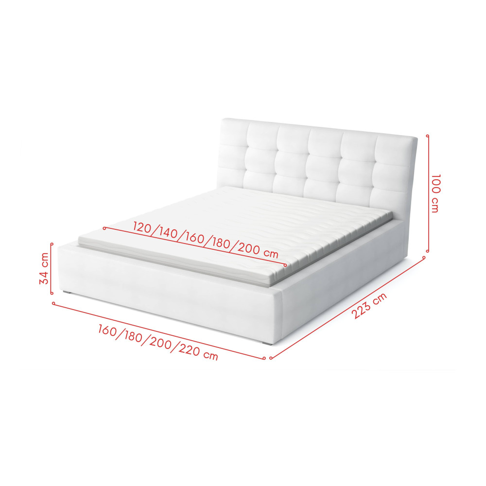 • Rodzaj stelaża – stelaż metalowy na automacie gazowym (34 listwy) + pojemnik na pościel dwukomorowy na całości powierzchni spania - Materac osadza się 10 cm w ramie łóżka