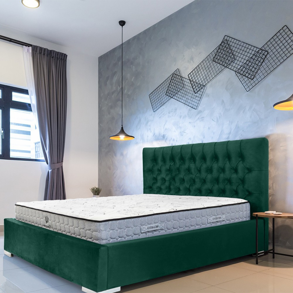 • łóżko w standardzie wyposażone zostało w stelaż o podbudowie drewnianej z 40-stoma listwami sprężynującymi ze sklejki drewnianej