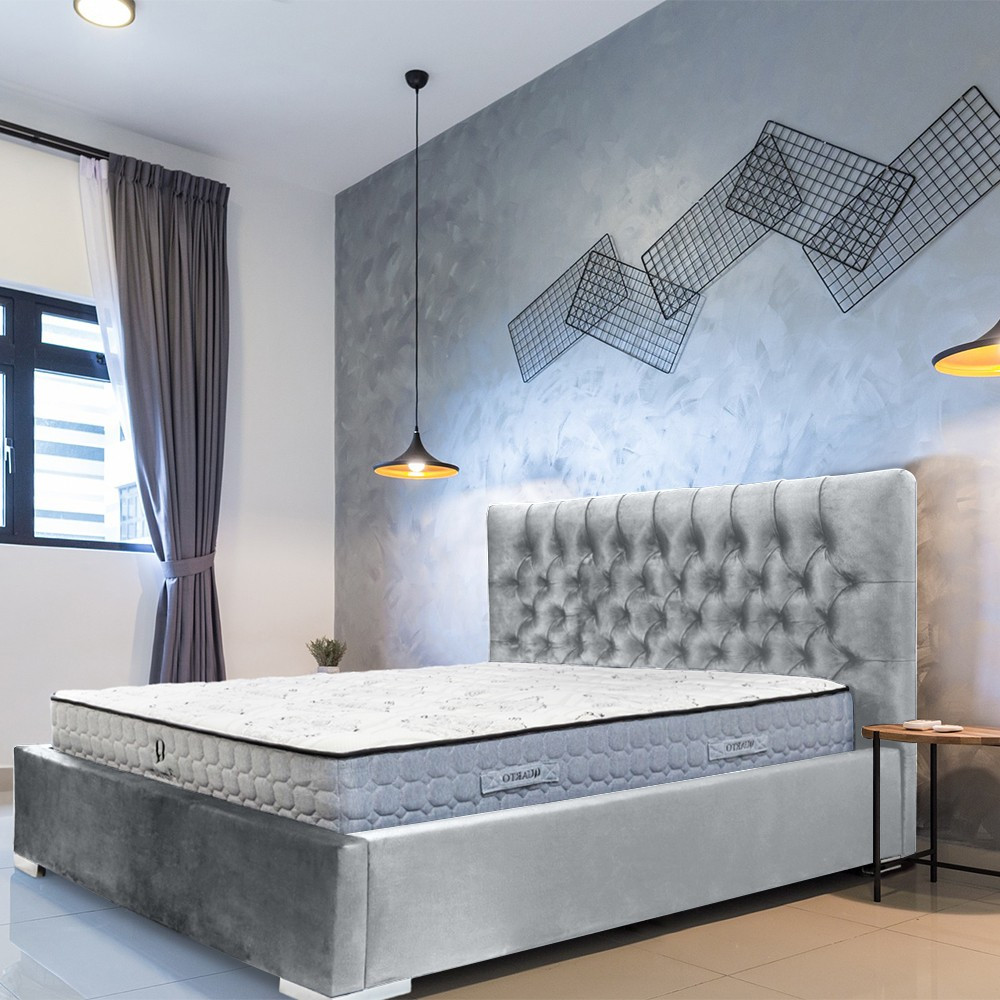 • łóżko w standardzie wyposażone zostało w stelaż o podbudowie drewnianej z 40-stoma listwami sprężynującymi ze sklejki drewnianej