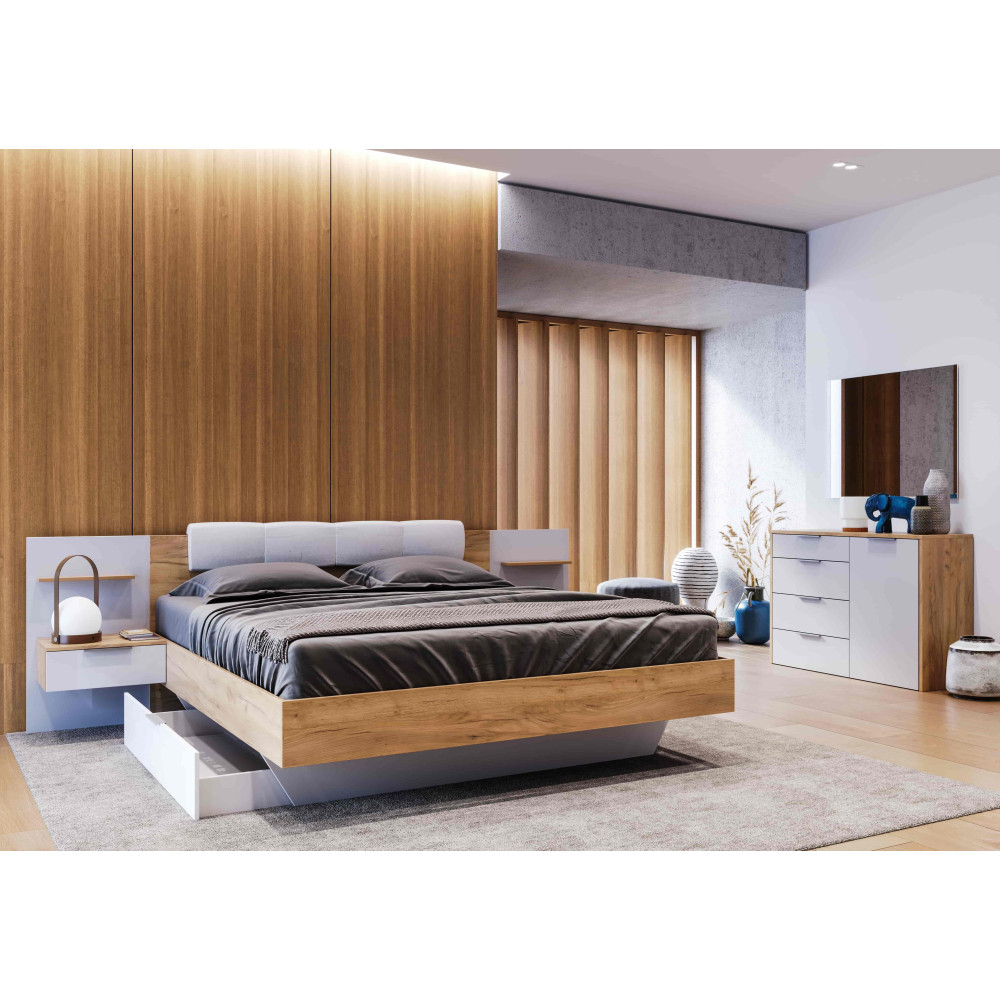 Łóżko Amanda 160 biały połysk/dąb craft z szufladami