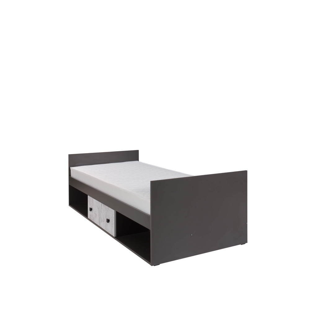 Łóżko młodzieżowe "Charlot" z szufladą po prawej lub lewej stronie, wykonane z płyty laminowanej, to praktyczne i stylowe rozwiązanie do pokoju młodzieżowego. Solidna konstrukcja tego łóżka gwarantuje trwałość i elegancję, jednocześnie oferując wygodne miejsce do snu oraz dodatkową przestrzeń do przechowywania.