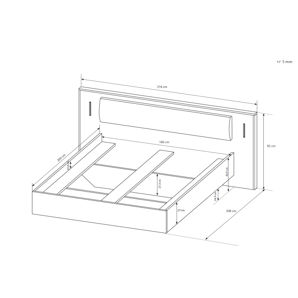 Łóżko ze stolikami nocnymi i oświetleniem Sega